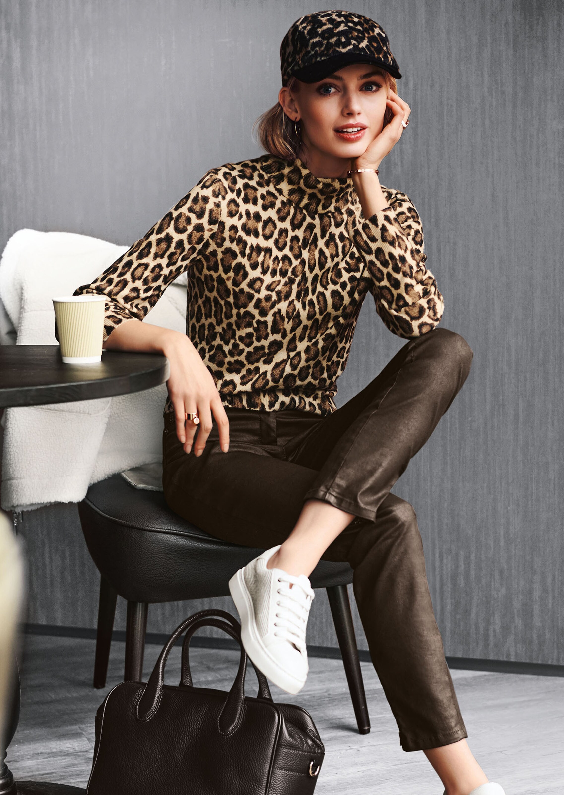 Ein stylischer Modepartner, der Ihren Look mit trendsicherer Note abrundet und ein echtes Fashion-Statement setzt. Das textile Material der Cap ist angenehm leicht und präsentiert sich in kontraststarkem Leo-Dessin. Komplett gefüttert und mit flauschiger Oberfläche überzeugt die modische Kopfbedeckung mit wohltuendem Trage-Komfort. Der großzügige Schirm hebt sich in unifarbenem Kontrast edel vom Animal-Muster ab und schützt vor tief stehender Sonne.