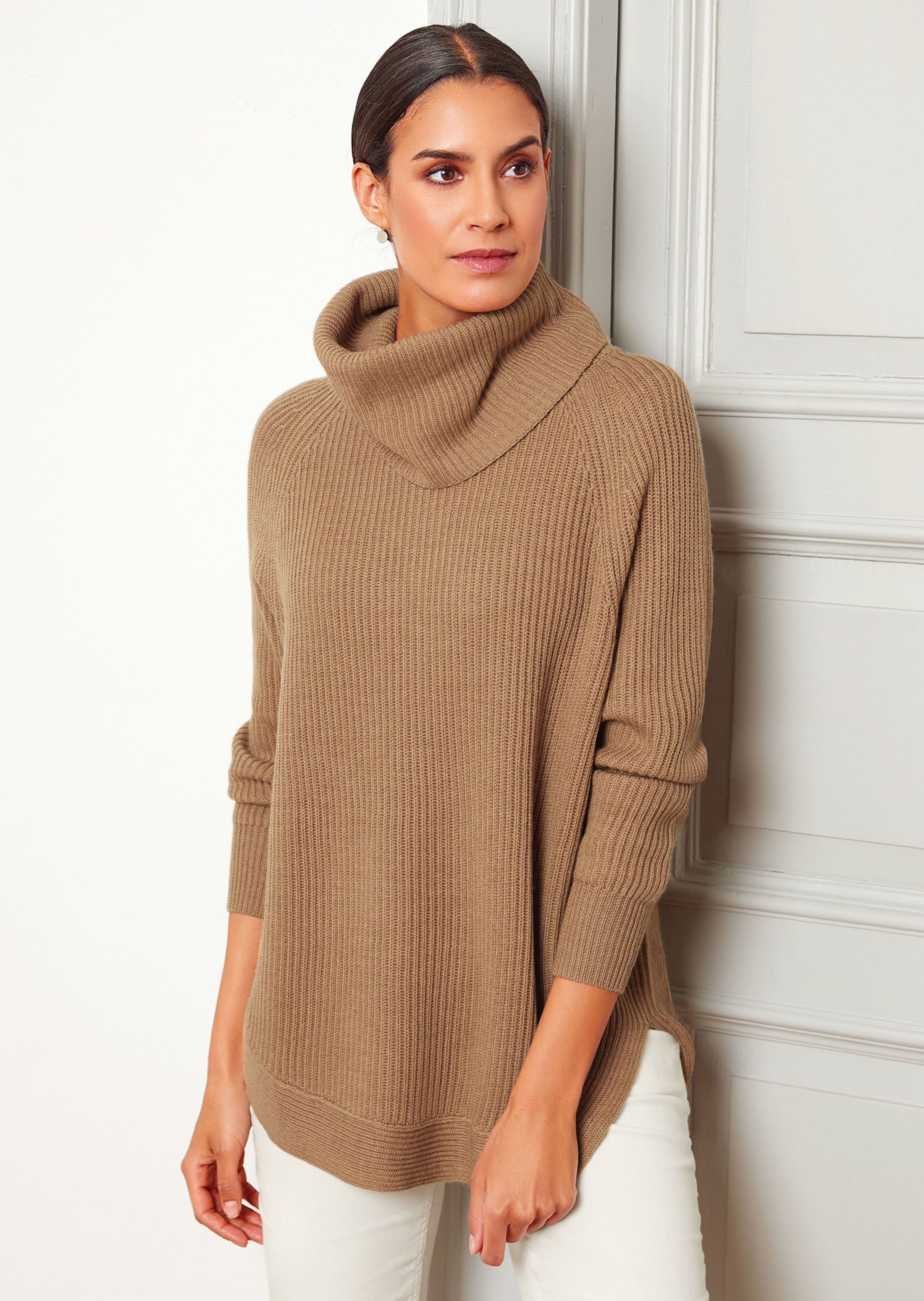Leicht »oversized« und in angesagten Nuancen wird der Pullover zum echten Must-have. Markanter Rippstrick aus Schurwolle in Merino-Qualität ist weich und hautsympathisch im Griff. Mal vertikal, mal horizontal gearbeitet setzt er wunderschöne Akzente und erhält mit dem großzügigen Capuchon-Kragen eine lässige Prise Modernität. Raglanärmel und die in Form gestrickte Saumblenden runden den Style ab.