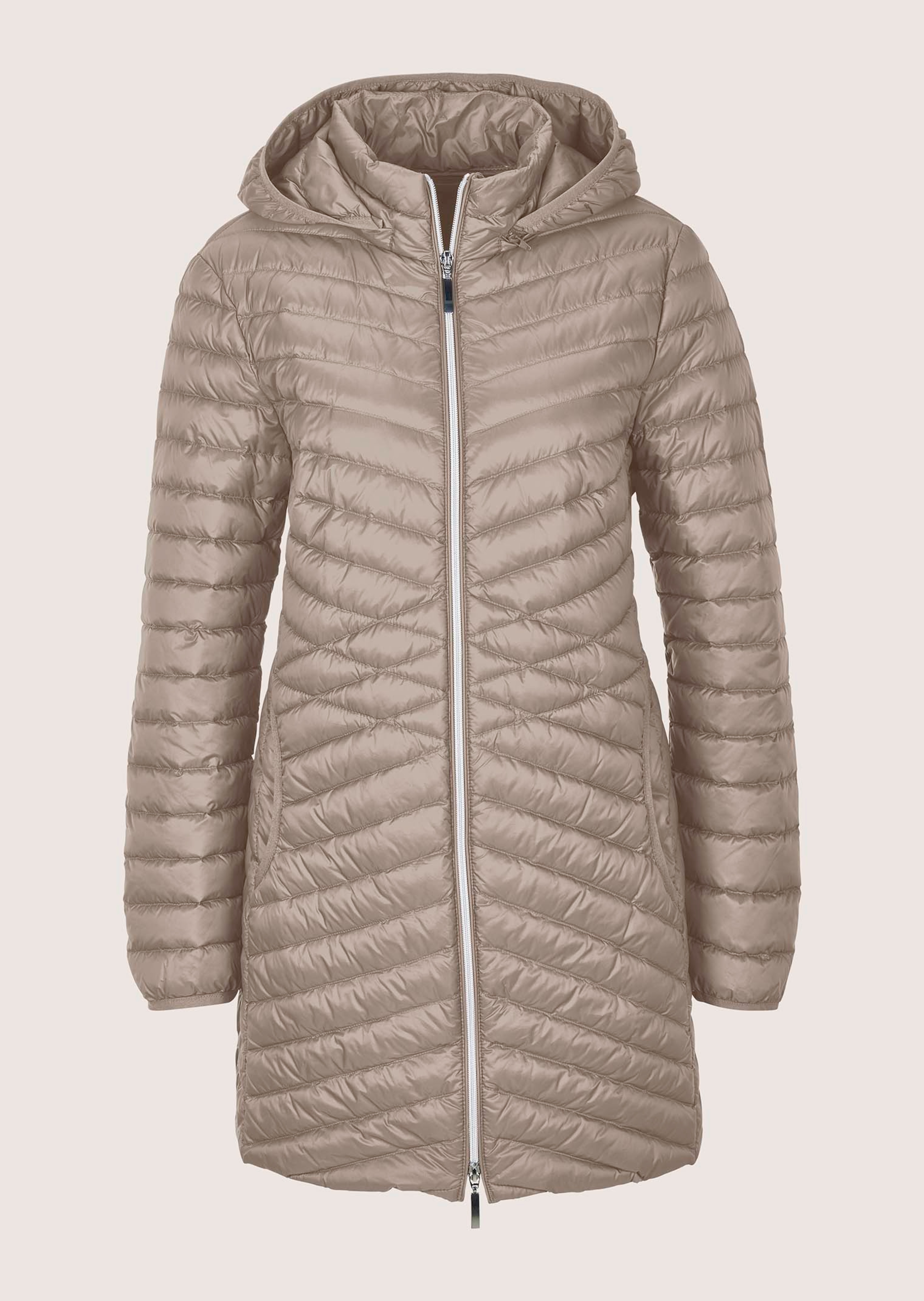 Dieser Mantel mit Daunen-Feder-Füllung und figurfreundlicher Steppung ist angenehm leicht und hält trotzdem zuverlässig warm. Die längere Passform mit Stehkragen und Kapuze schützt vor Wetterkapriolen, elastische Bündchen an Kapuze und Taschen sorgen für bequemen Sitz. Der Zwei-Wege-Reißverschluss lässt sich auch von unten öffnen, besonders praktisch beim Sitzen oder Radfahren. Ein Teil, das man gerne überall dabeihat.