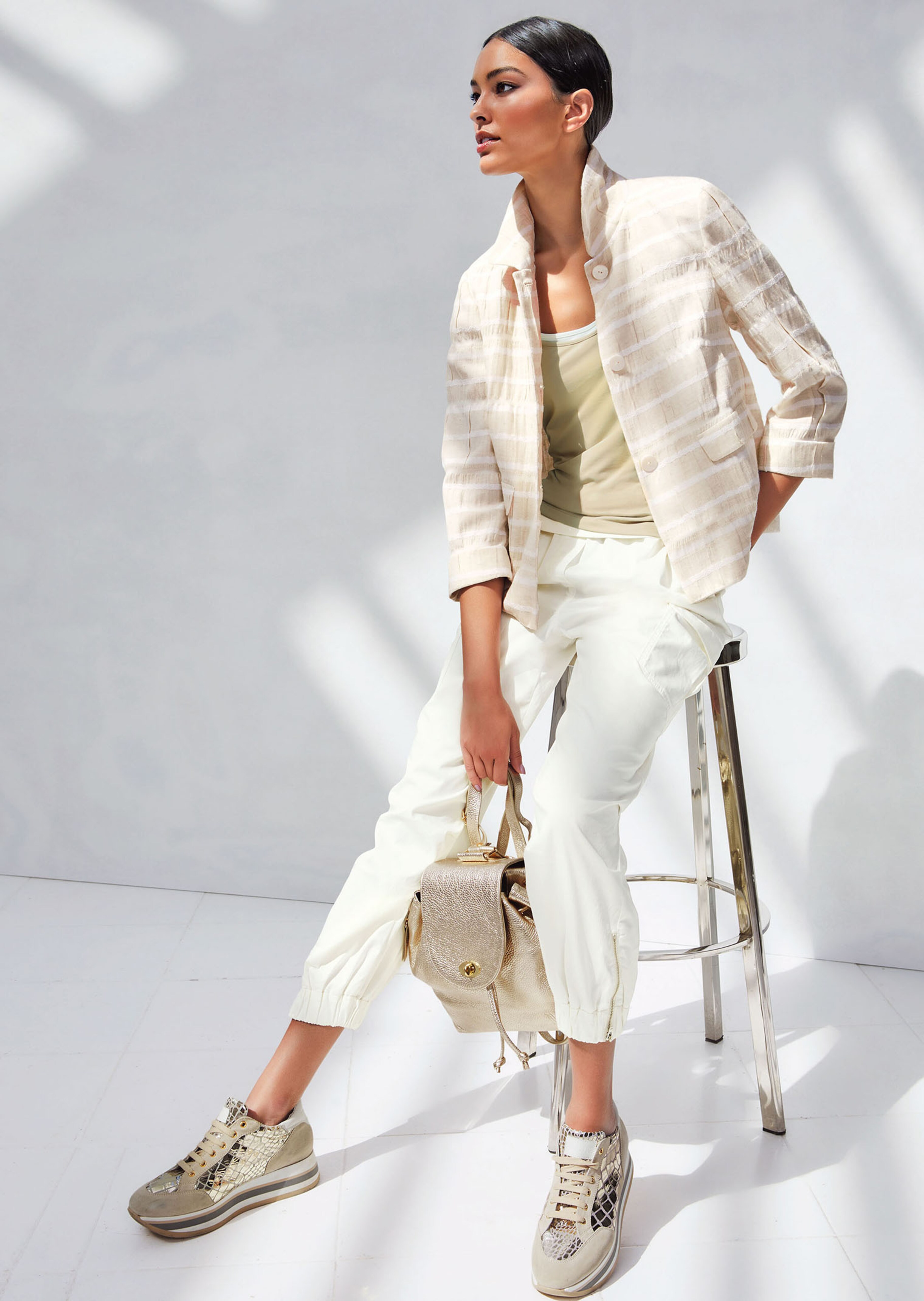 Sportive Schuhe kommen diese Saison mit viel Glamour und Glanz daher. Die eleganten Sneaker aus Leder setzen mit ihrem betont hohen Ringelboden den Trend. Die Innensohle können Sie herausnehmen. Wir lassen sie per Hand in Italien fertigen, so entsprechen sie dem hohen Anspruch an den Stil, die Ausarbeitung und die Qualität. Durch die Farbkomposition können Sie sie zu den unterschiedlichsten Tönen kombinieren – sehr lässig auch zu Denims.