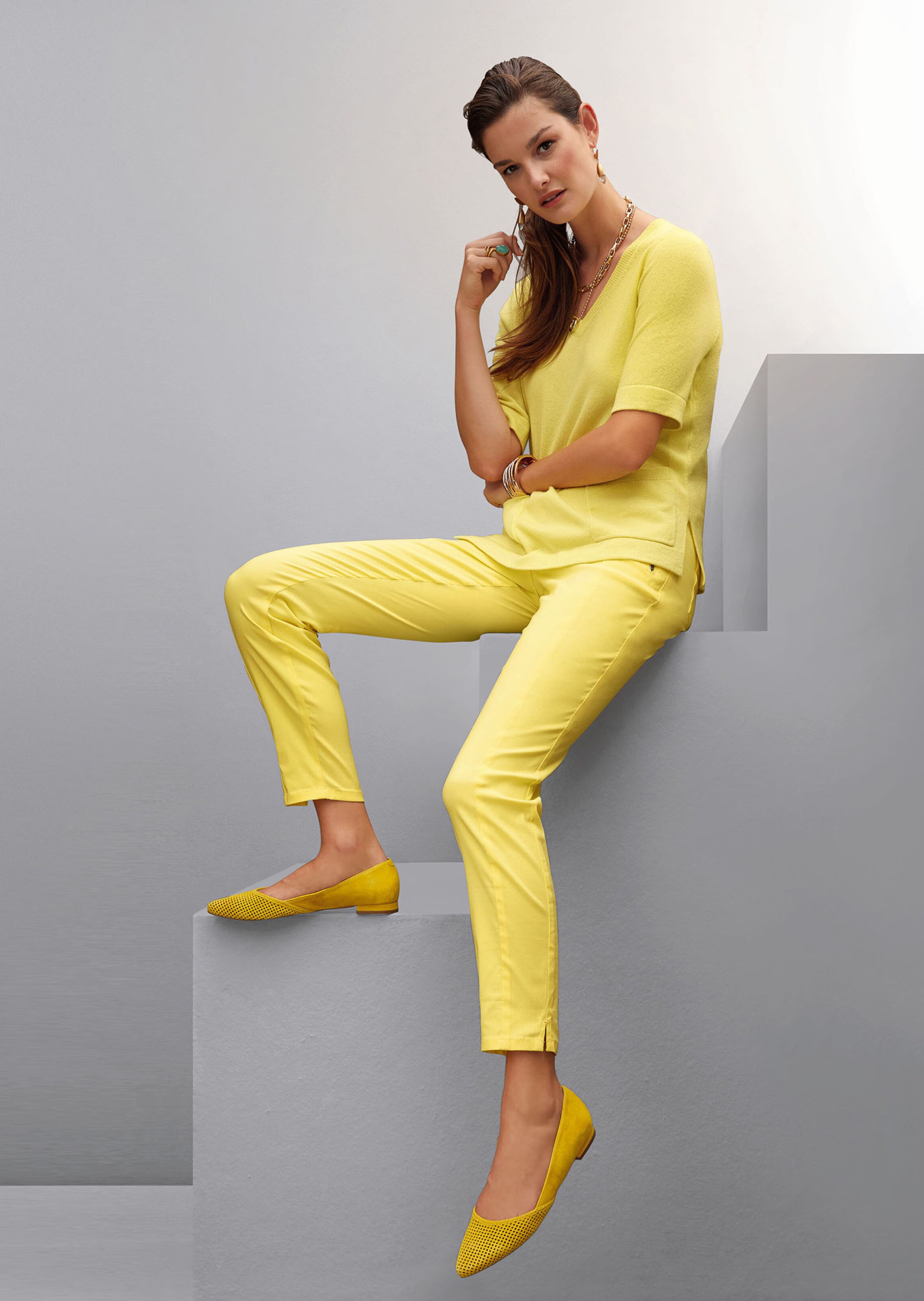 Die enge Hose im Skinny-Fit mit Reißverschlusstaschen zeichnet eine schlanke Linie und lange Beine. Ausgestattet mit Formbund, Gürtelschlaufen, vorderseitigen Zippertaschen und aufgesetzten Gesäßtaschen zeigt sie geschmackvolle Details. Kleine Saumschlitze setzen den zusätzlichen Akzent. Die vorverlegte Naht mit Zierstepp betont den schlanken Style. Der MADELEINE-Logoknopf, die rückwärtige Formpasse und die MADELEINE-Nieten auf den Gesäßtaschen sind durchdachte Stilelemente. Der Viskose-Mix trägt sich angenehm auf der Haut.