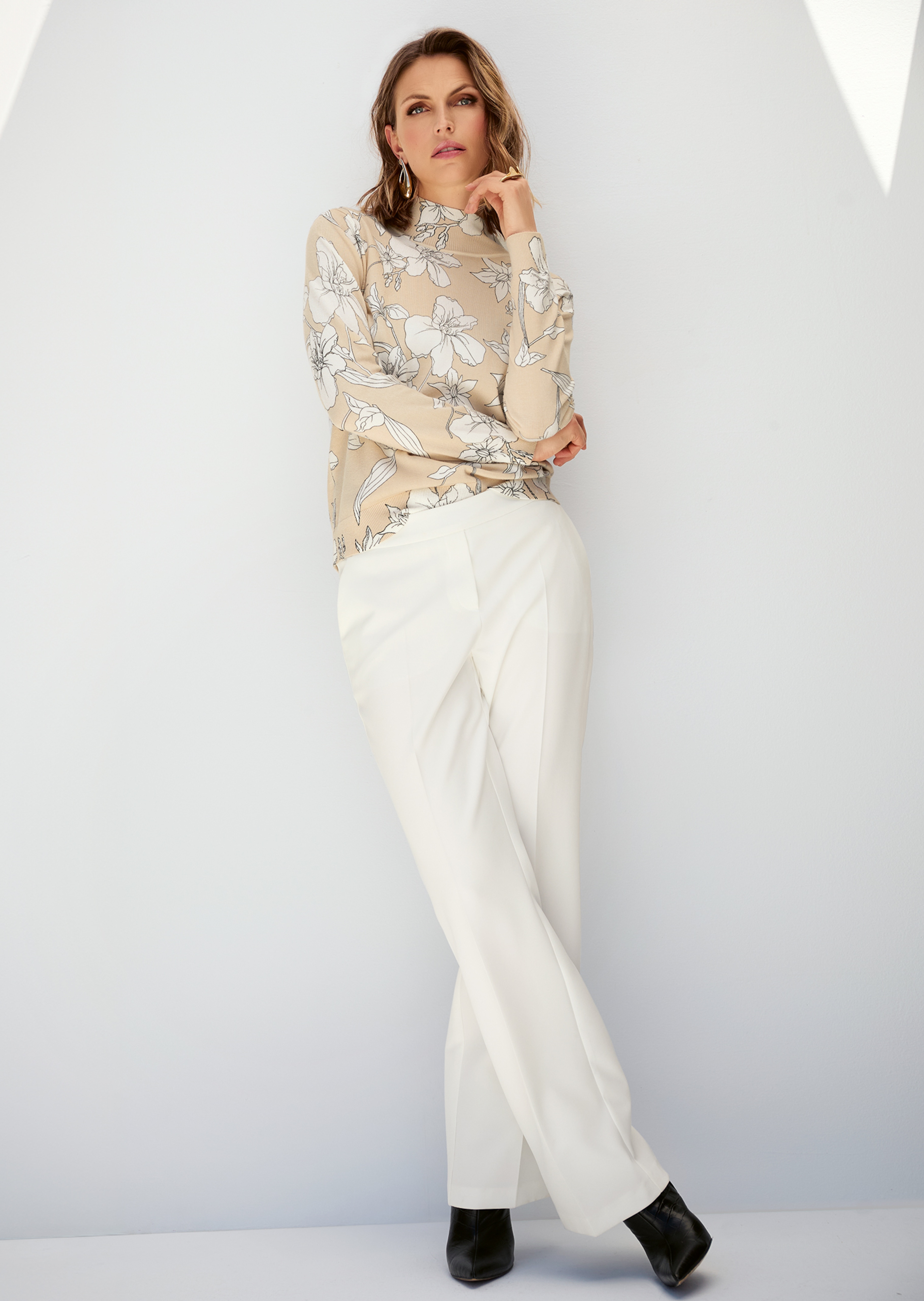 Zarte Linien verleihen dem Blumendruck des Pullovers eine besonders edle Note und betonen die Farbbrillanz des Lieblingsstücks. Das Dessin ist von Modell zu Modell variabel und macht aus jedem Teil ein Unikat. Die tolle Viskose-Mischung ist sehr angenehm im Trage-Gefühl. Kurz und komfortabel geschnitten ist er vielseitig kombinierbar. Stehkragen und lange Ärmeln runden den Look ab.