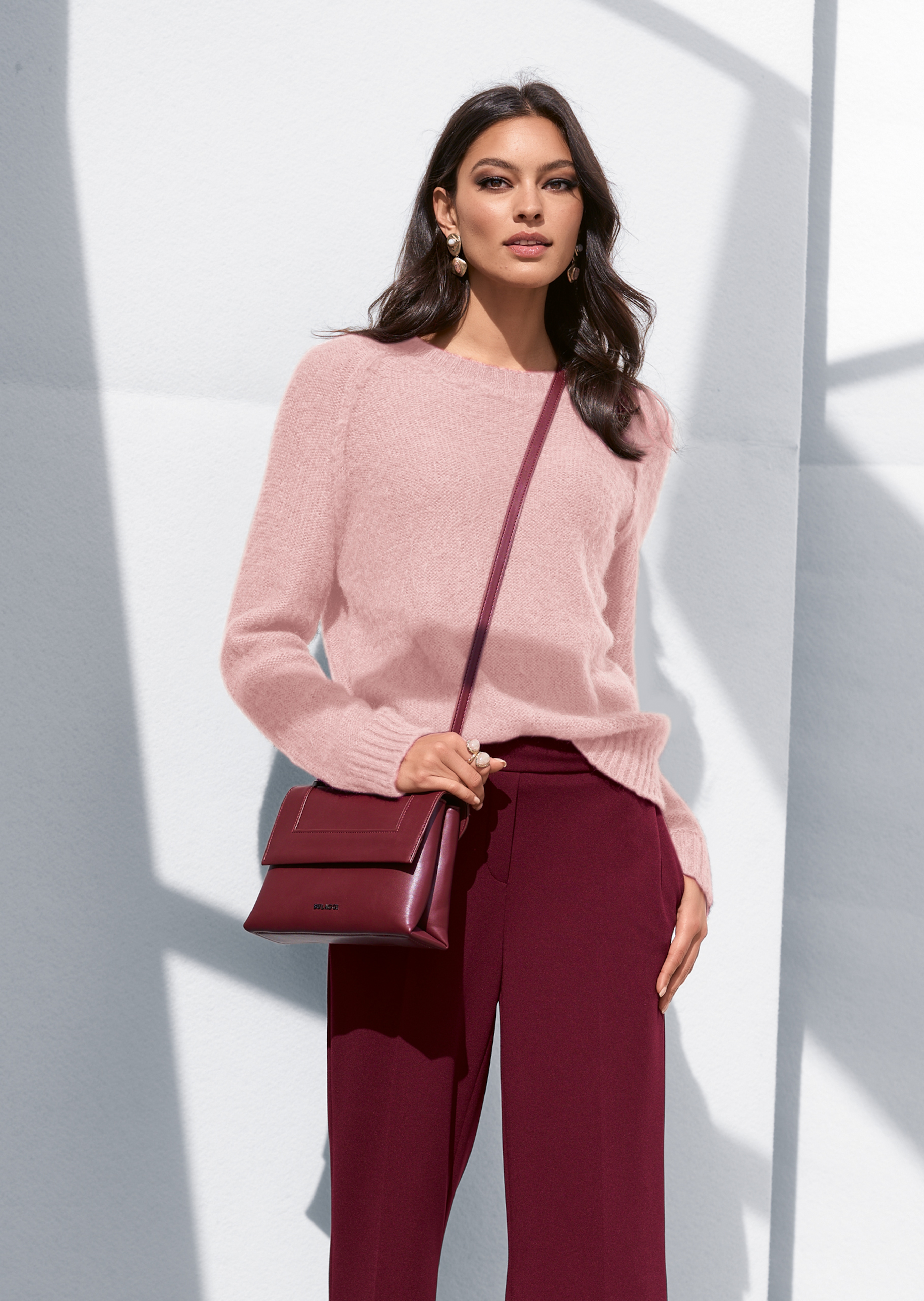 Seine flauschige Oberfläche macht diesen Pullover auch optisch zu einem Highlight und begeistert darüberhinaus mit kuschelig weichem Trage-Gefühl. Die linksgestrickte Garnmischung präsentiert sich in attraktiver Kurzform und ist mit Rundhals-Ausschnitt und langen Raglanärmeln gearbeitet. Ausschnitt-, Ärmel- und Saumkante werden in klassischer Manier von formstabilen Rippenbündchen eingefasst.