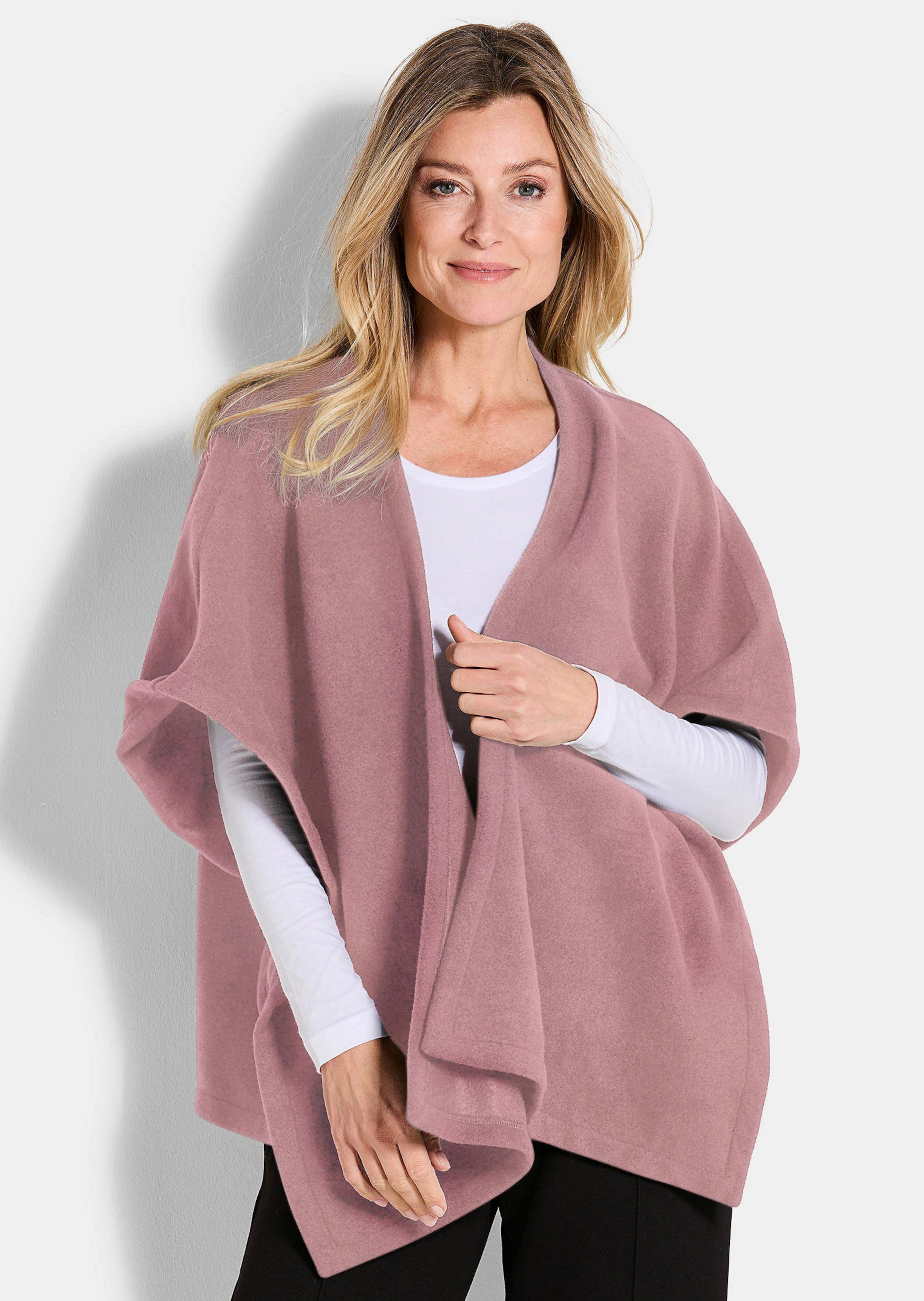 Poncho von PLANTIER aus flauschiger Fleece-Qualität, die angenehm weich und wärmend ist. Ausgestattet mit Anti-Pilling-Effekt für langanhaltende Qualität. Das verschlusslose Modell mit längerem Halbarm sorgt für einen lockeren, entspannten Look – perfekt zum Drüberziehen, wenn’s mal kühler wird oder für den Übergang.