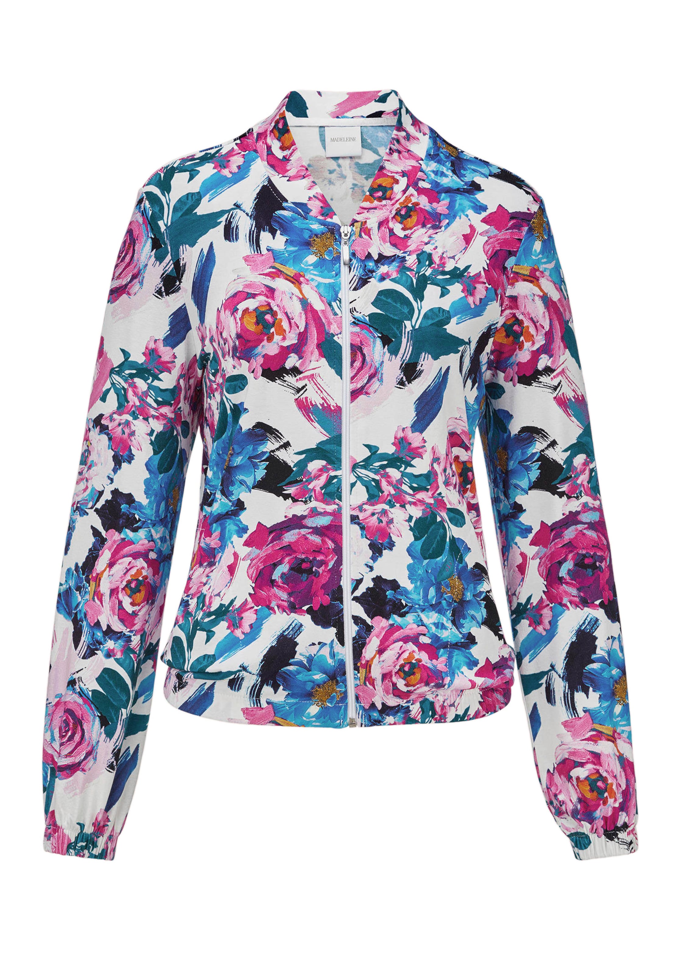 Ein vielseitiges Lieblingsstück für den Alltag: Die Blousonjacke von COMODO überzeugt durch sportlich-feminine Linien und einen angesagten Allover-Print. Die leichte Jerseyware aus Viskose mit Elasthan ist formstabil und komfortabel, der halsnahe Kragen und der durchgehende Reißverschluss bieten Flexibilität beim Styling. Gummibündchen an Saum und Ärmeln sowie zwei Eingrifftaschen setzen praktische Akzente.