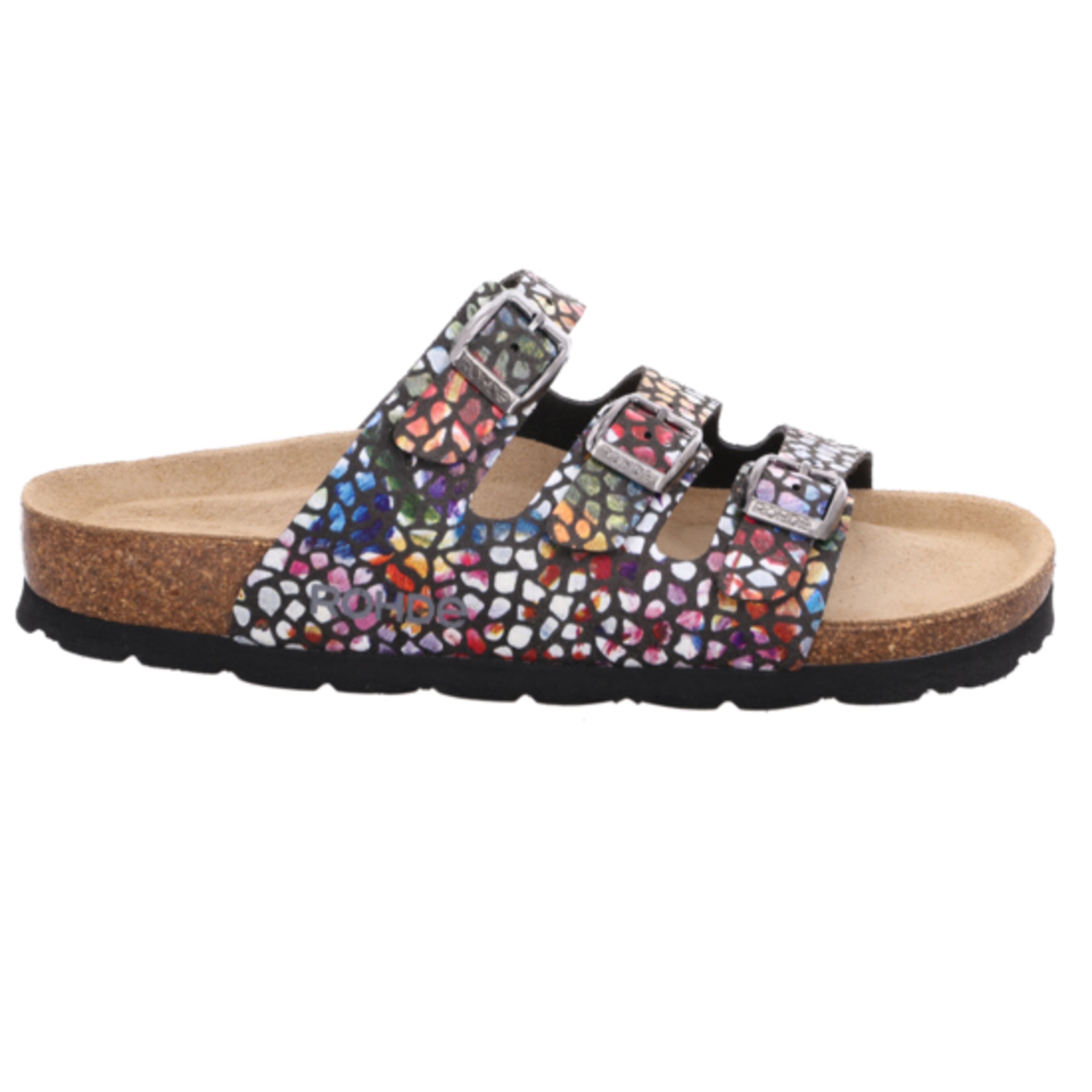 Diese Pantolette von ROHDE kommt mit einer rutschhemmenden Sohle und einem tiefen, atmungsaktiven Fußbett mit flexiblem Kork-Latex-Kern. Das Innenfutter sorgt für ein weiches Tragegefühl, und die verstellbaren Schnallen der Pantolette gewährleisten eine variable Passform.