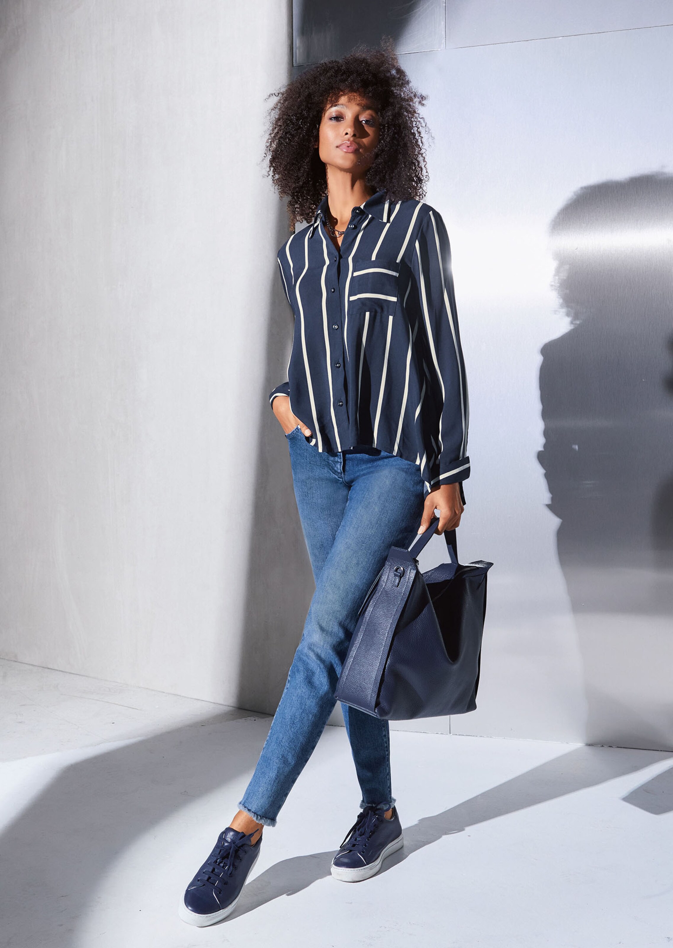Ein Hemd, das sich super zu Denims kombinieren lässt! Das gestreifte Hemd aus geschmeidig fließender Viskose trägt sich angenehm leicht. Der lässige Style in dezenter, schwingender A-Linie zeichnet eine angesagte Silhouette. Wir haben es für einen modernen Look mit aufgesetzten Taschen, Kragen, Knopfleiste, rückseitiger Falte, langen Armen und Knopfmanschetten gestaltet. Dank des verlängerten Rückteils und des gerundeten Saums können Sie es prima außerhalb des Bundes tragen. Brustabnäher ab Größe 40 sind ein weiteres Detail.