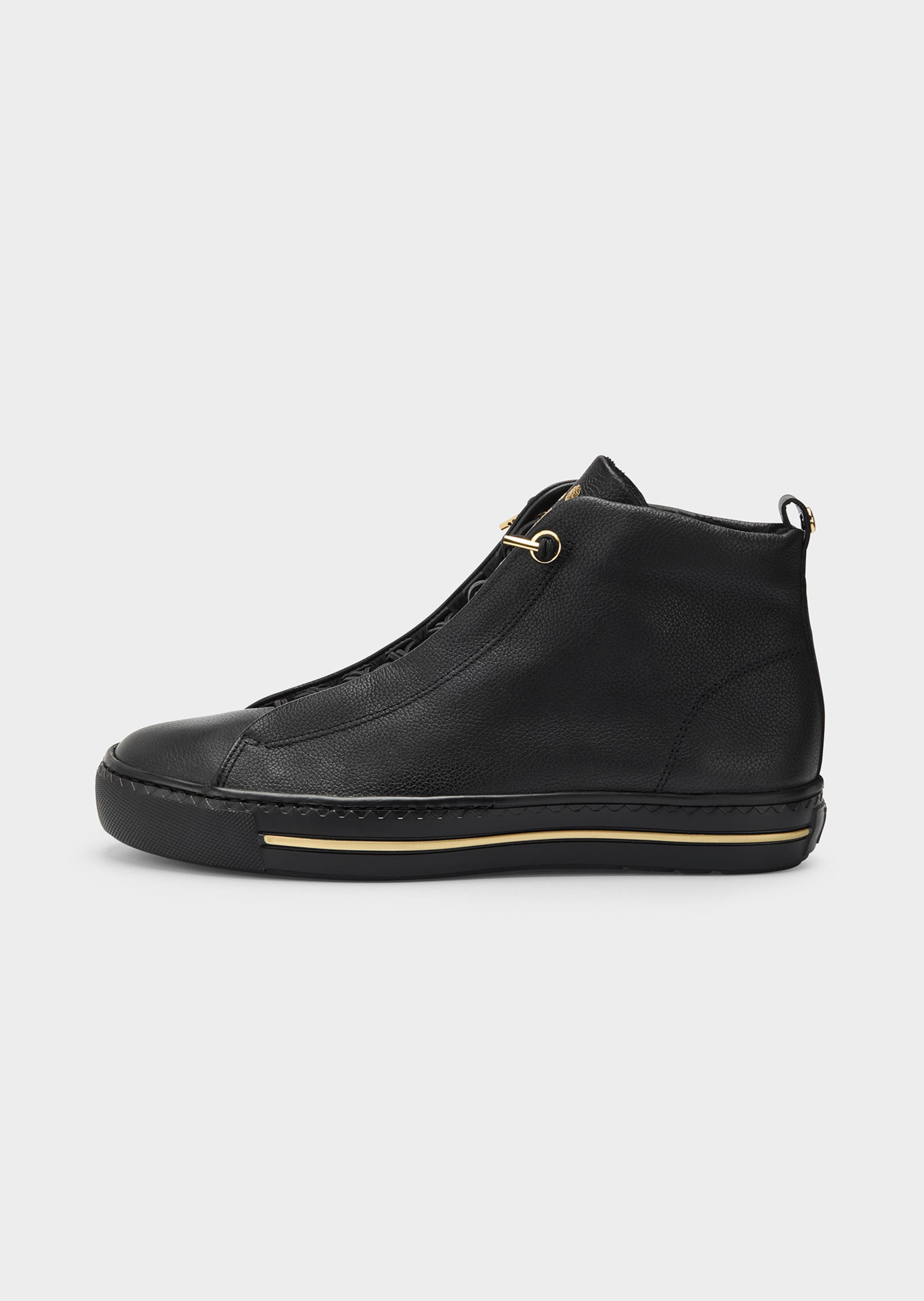 Wenn sportlich auf edel trifft, entsteht ein Schuh wie dieser: Der High-Top-Sneaker von PAUL GREEN bringt beides gekonnt zusammen. Die schlanke Form in Kombination mit feinem Leder, goldenen Details und einer monochromen Sohle verleiht dem Modell eine moderne, cleane Ausstrahlung – lässig genug für die Freizeit, schick genug fürs Office. Reißverschluss und Elastikschnürung machen den Einstieg besonders einfach. Innen sorgen weiches Futter und eine flexible Sohle für das typische PAUL-GREEN-Wohlgefühl.
