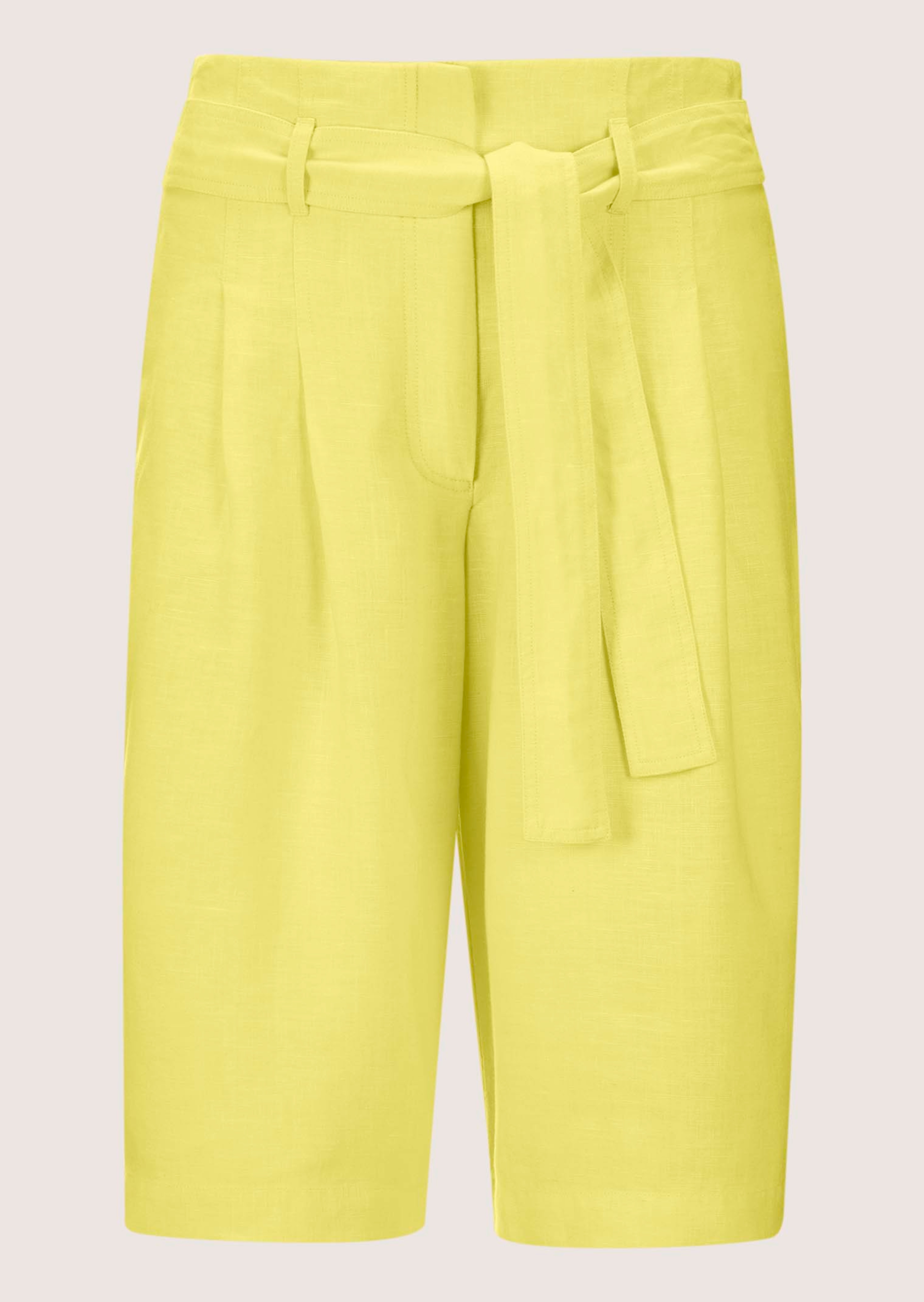Bermudas sind ideale Sommer-Begleiter, besonders, wenn sie aus Leinen sind. Angenehm kühl auf der Haut punktet dieses sportliche Modell mit einzigartigem Tragegefühl und zeigt sich in edlem Knitter-Look. Der markante, hochgezogene Bund setzt trendstarke Akzente und ist mit gepflegten Bundfalten gearbeitet. Die weite Beinform sorgt für luftig leichten Trage-Genuss und ist mit eingearbeiteten Schubtaschen ausgestattet. Gürtelschlaufen und Bindegürtel komplettieren den Style.