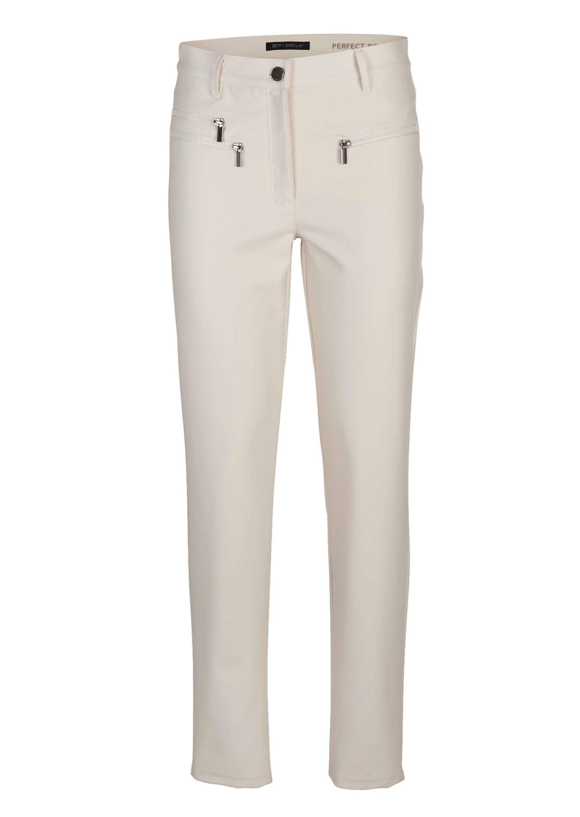 Hose in Slim-Fit-Passform von BETTY BARCLAY, die Ihre Beine gekonnt betont. Dank des höher geschnittenen Bunds im High-Waist-Stil wird die Hose zum absoluten Body Shaper – sie kaschiert kleinere Pölsterchen am Bauch sofort. Mit Knopfverschluss und aufgesetzten Taschen mit Reißverschluss. Praktisch und elegant zugleich ein Modell, das Sie bei vielen Gelegenheiten tragen können. Beininnenlänge in Gr. 38 ca. 78 cm. Saumweite ca. 30 cm. Styling-Tipp: Hosen im Skinny-Style sind ideal für Oversize-Oberteile oder längere Blusen und Flatter-Shirts. Achten Sie immer auf die Balance zwischen weiten und engen Modellen, damit die feminine Silhouette nicht verloren geht.