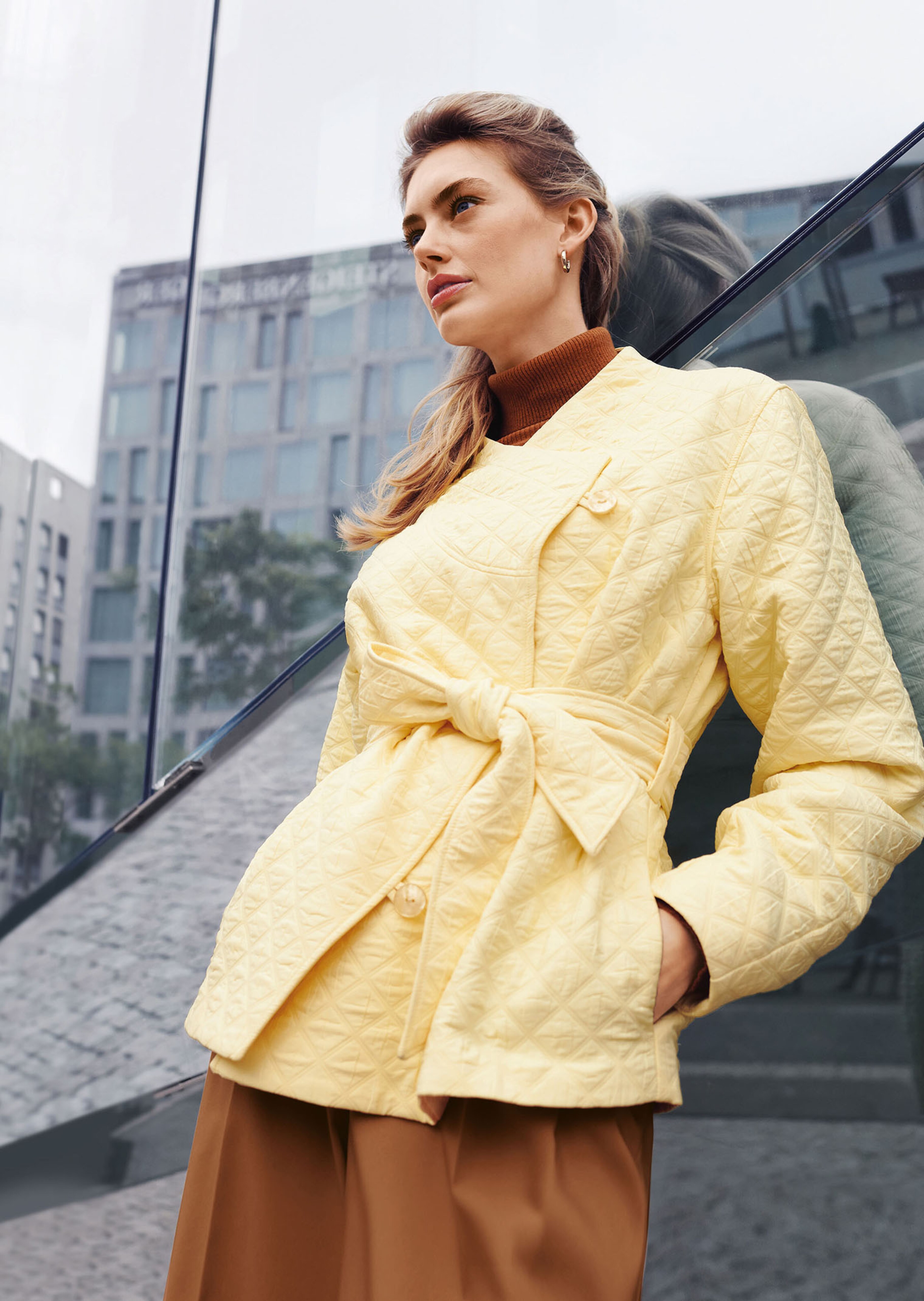 Alles andere als langweilig. Steppjacken können so stylisch sein wie dieses Modell in extravaganter Kimono-Form zeigt. Leicht asymmetrisch designt und mit Bindegürtel auf Figur gebracht, zaubert die kragenlose Trendjacke eine Extraportion Raffinesse in Ihren Look. Sie ist leicht wattiert, hat eine überschnittene Schulterpartie, Brustabnäher, 4 Schlaufenknöpfe, Gürtelschlaufen und Taschen in der Seitennaht.