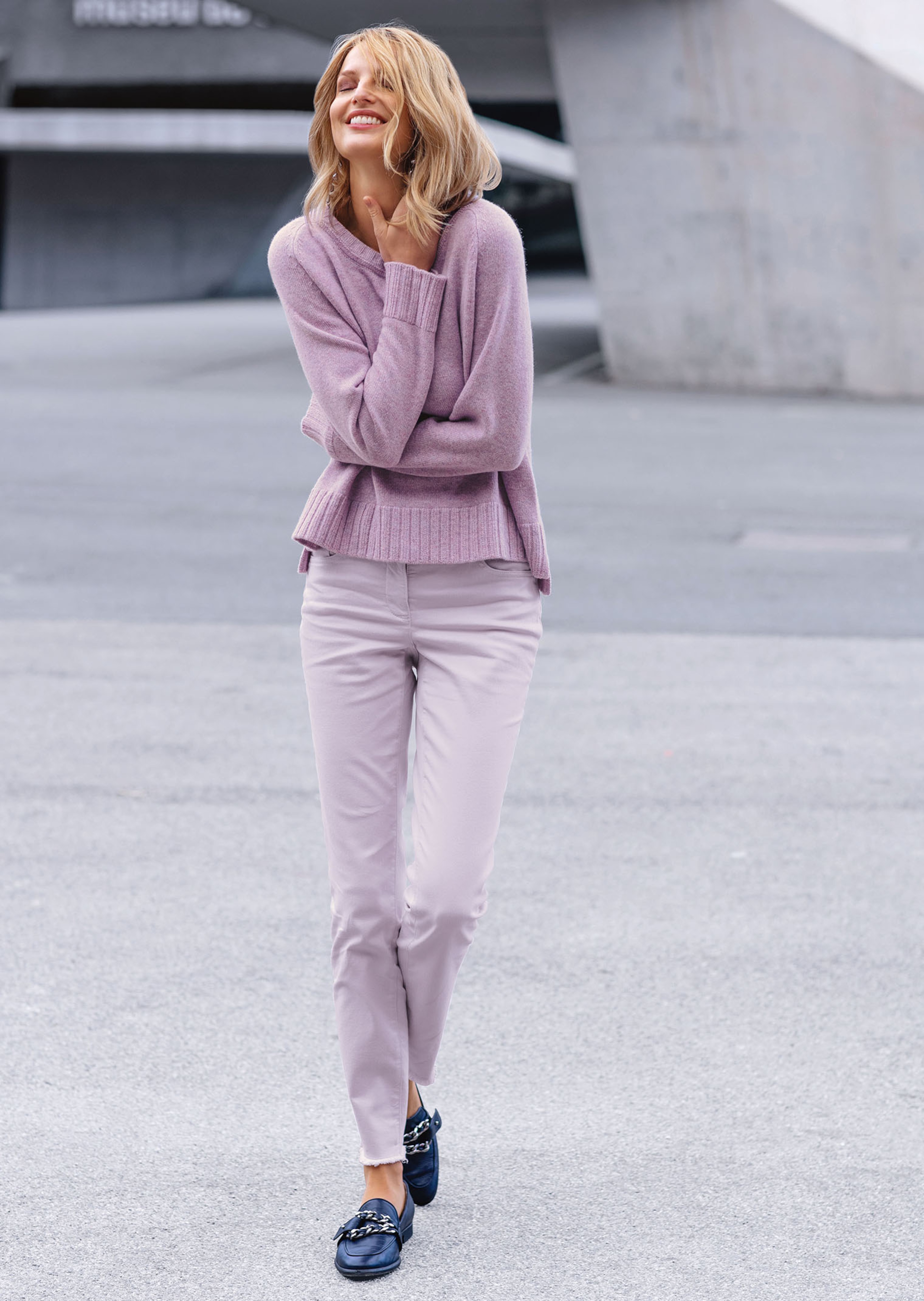 Eine Jeans im Skinny-Fit, die mit angesagten Fransen dem Lässigtrend der Saison folgt. Fransen sind jetzt auch bei Hosen ein großes Thema und setzen hier einen frechen Akzent. Im aktuellen Five-Pocket-Style und mit schmaler Silhouette zeichnet die enge Jeans eine lange Beinlinie und überzeugt mit gutem Sitz. Formstabil und trageangenehm ist sie eine Allrounderin der unterschiedlichsten Kombinationen und Anlässe. Hochwertig verarbeitet mit MADELEINE-Jeansnieten, Formbund, Gürtelschlaufen und Rückenpasse zeigt sie klassische Details.