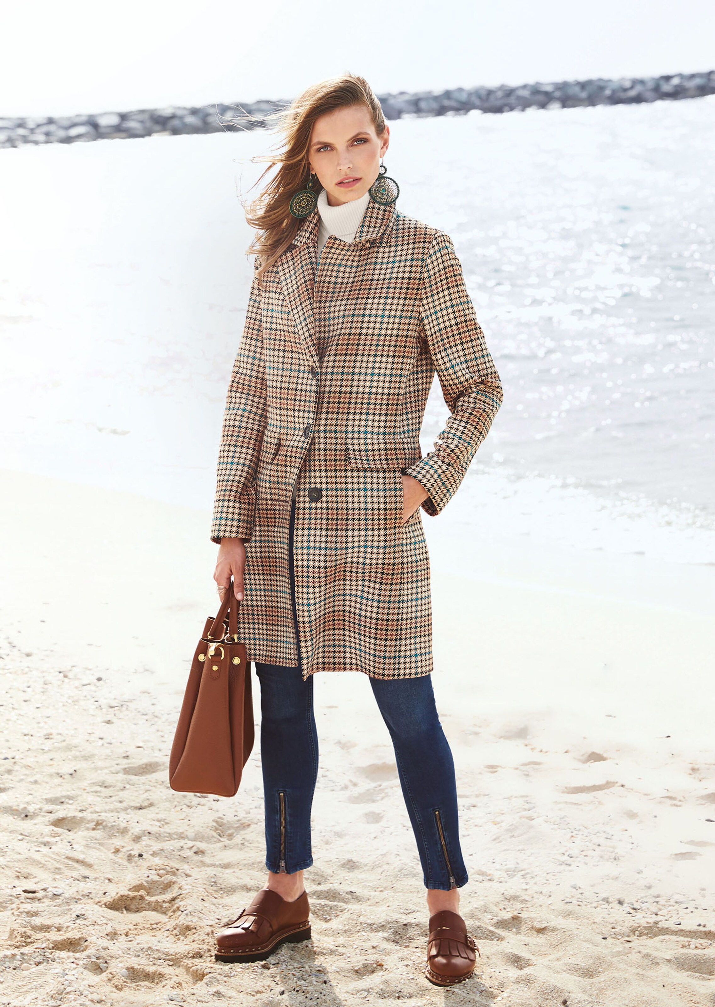Karo-Dessins sind aus der kommenden Saison nicht wegzudenken! Sie präsentieren sich in zahlreichen Schattierungen und bringen Abwechslung in die Garderobe. Das mehrfarbige Muster brilliert hier in attraktivem Kontrastspiel und ist von Modell zu Modell verschieden. So wird jedes Stück zum kostbaren Unikat! Die hochwertige, italienische Wollmischung zeigt sich in trendstarker, lässig gerader Oversized-Form. Edel im Griff und wertvoll verarbeitet zeigt sich der Einreiher mit klassischem Revers-Kragen und nahtfein gearbeiteten Taschen. Dekorative Zierpatten setzen einen schmuckvollen Akzent, während Knöpfe in Steinnuss-Optik den Look stilvoll abrunden und von viel Liebe zum Detail zeugen. Ein Kettenaufhänger gibt stabilen Halt an der Garderobe.
