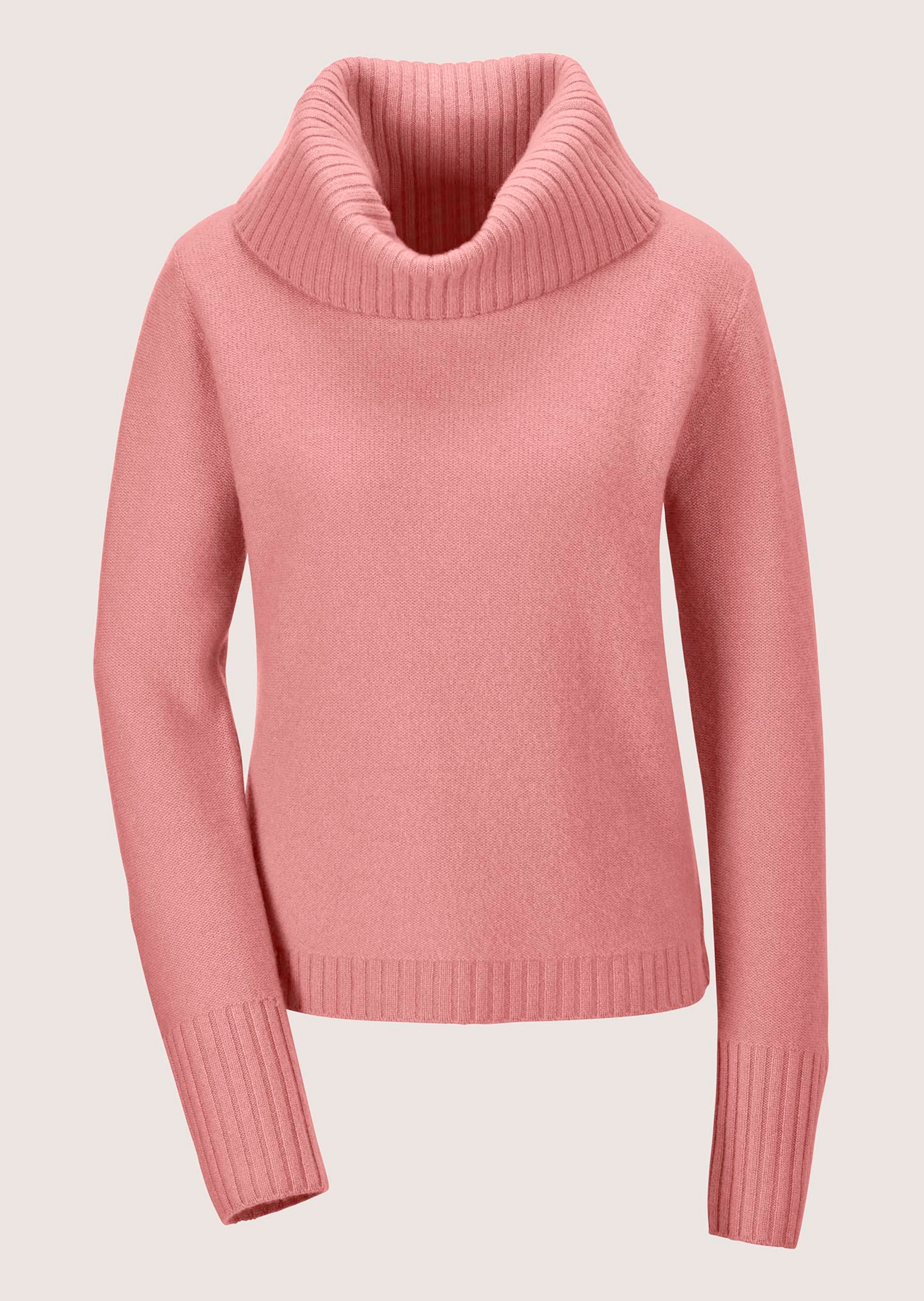 Ein Pullover aus hochwertigem Naturgarn, der mit kuschelig weichem Trageluxus begeistert. Die attraktive Kurzform mit weich fallendem Rollkragen und langen Ärmeln begeistert mit lässig moderner Aussage. Attraktive Ripp-Strukturen an Kragen und Ärmeln setzen stilvolle Akzente und bringen Schwung in den Look. Ein vielseitiger Luxus-Pullover, der Ihrem Auftritt Anspruch verleiht. Genießen Sie das einzigartige Feeling reinen Kaschmirs