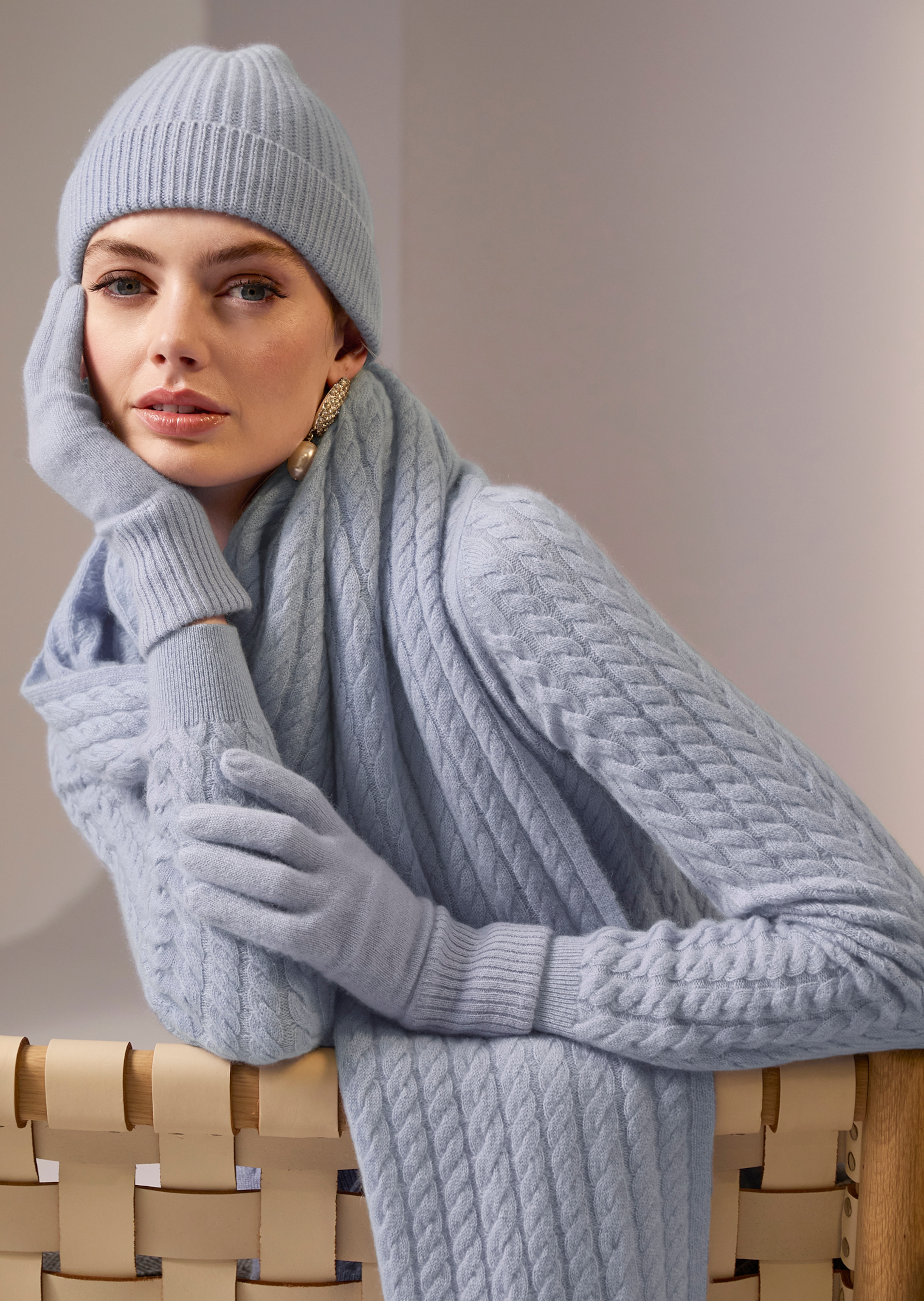 Reines Kaschmir macht diesen Schal zum echten Luxus-Accessoire! Eine kuschelig weiche Ergänzung für modebewusste Looks. Mit attraktivem Zopfmuster und formstabilen Rippenabschlüssen verleiht er jedem Outfit ein elegantes Finish. Dank opulenter Größe ist der Schal vielseitig tragbar und kann modisch geknotet, lässig gewickelt oder fantasievoll drapiert werden. Das edle Naturgarn ist hochwertig verarbeitet und unvergleichlich soft im Trage-Gefühl. Ein perfekter Partner an kalten Tagen.
