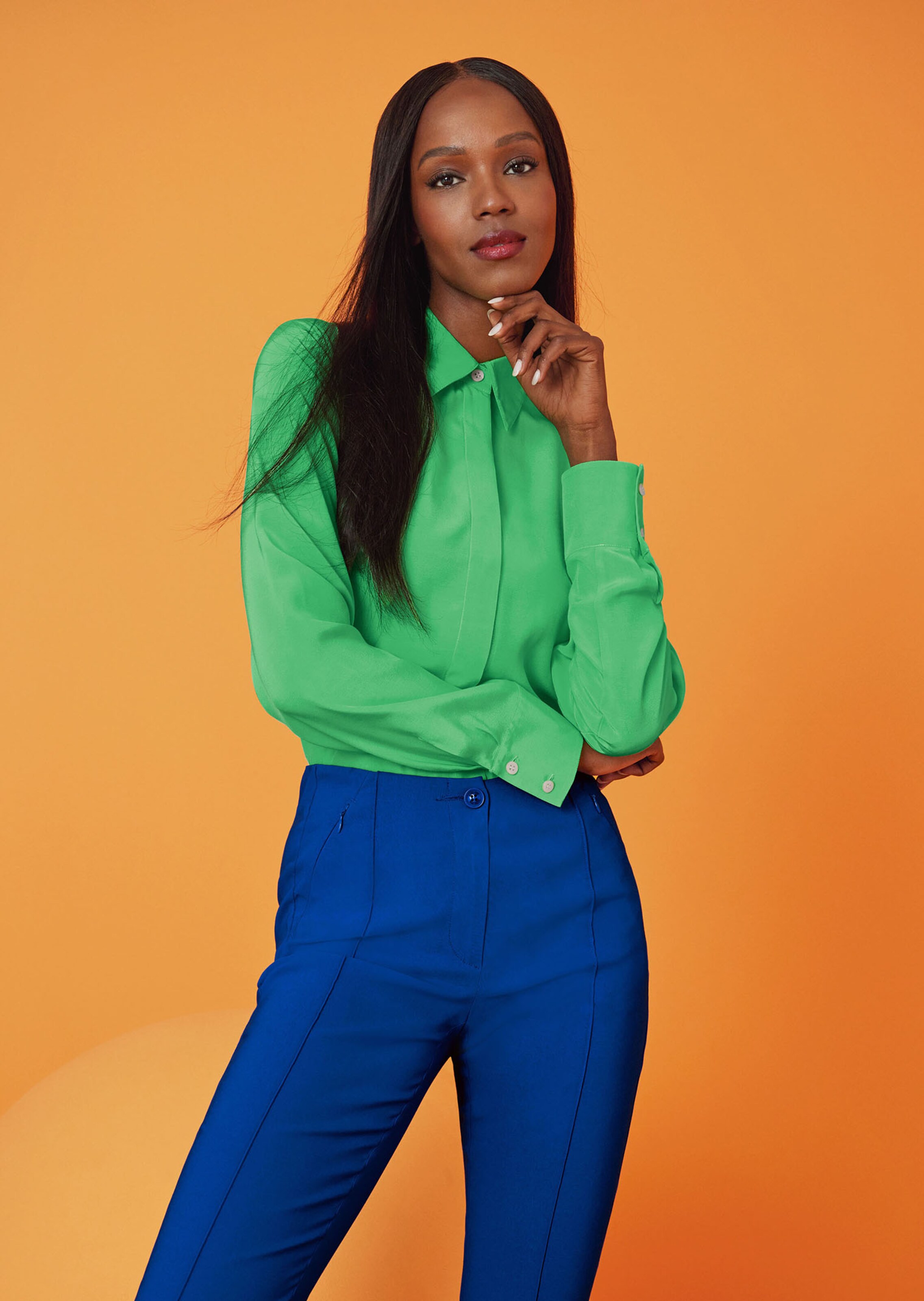 Eine Bluse mit Potential zum Lieblings-Basic – perfekt für Gelegenheiten von sportlich bis elegant! Zart fließende Viskose macht das Tragen zum reinsten Vergnügen und besticht mit weichem Glanz. Souverän bereichert die Bluse gehobene Event-Outfits mit schlichter Eleganz, komplettiert Business-Looks mit gepflegtem Understatement und verleiht lässigen Kombinationen ein edles Finish. Eine hochwertige Trendbegleiterin für alle Fälle! Die leicht taillierte Linie wird von französischen Nähten feminin in Szene gesetzt und ist mit klassischem Blusenkragen, verdeckter Knopfleiste und einer leicht gerundeten Saumlinie gearbeitet. Seitliche Saumschlitze schenken ein Plus an Bewegungsfreiheit und sorgen für die legere Note. Die langen Ärmel schließen mit stilvollen, breiten Form-Manschetten ab, die auf 2 Knöpfe zu schließen sind. Schulterpolster halten das Lieblingsstück in Form und verleihen zusätzlichen Komfort.