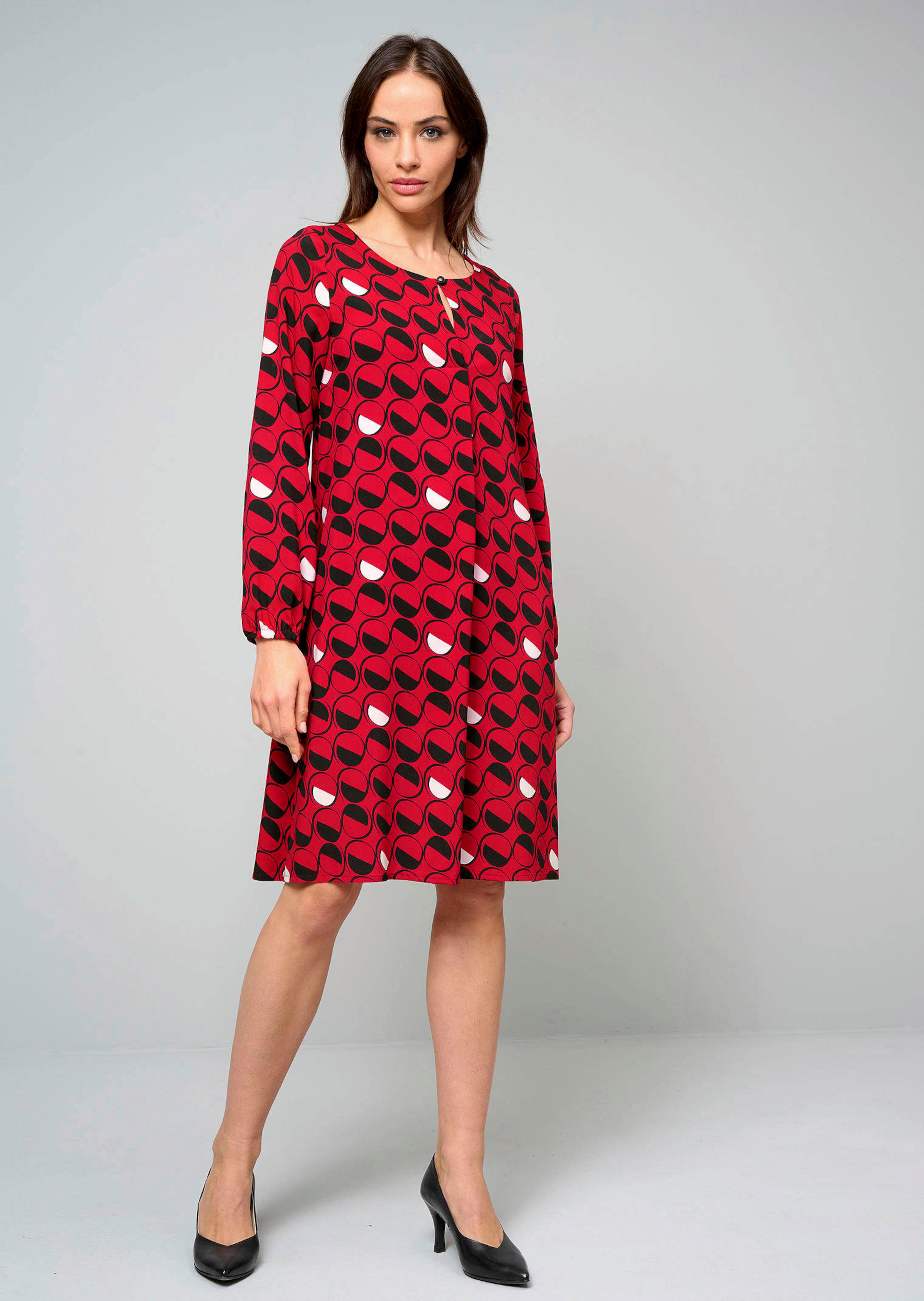 In jeder Situation gut aussehen – mit diesem Druckkleid aus dem Hause Alba Moda. Besonders hervorzuheben sind das grafische Muster und der Knopf. Es verfügt über einen Rundhalsausschnitt. Durch seine figurumspielende Form gibt es sich besonders schmeichelhaft. Langer Ballonärmel mit Gummizug. Mit seitlichen Eingrifftaschen. Verwendet wurde Baumwolle. Bestellen Sie das Druckkleid von Alba Moda bequem in unserem Onlineshop und Ihr neues Lieblingsteil ist schon in Kürze bei Ihnen zu Hause!