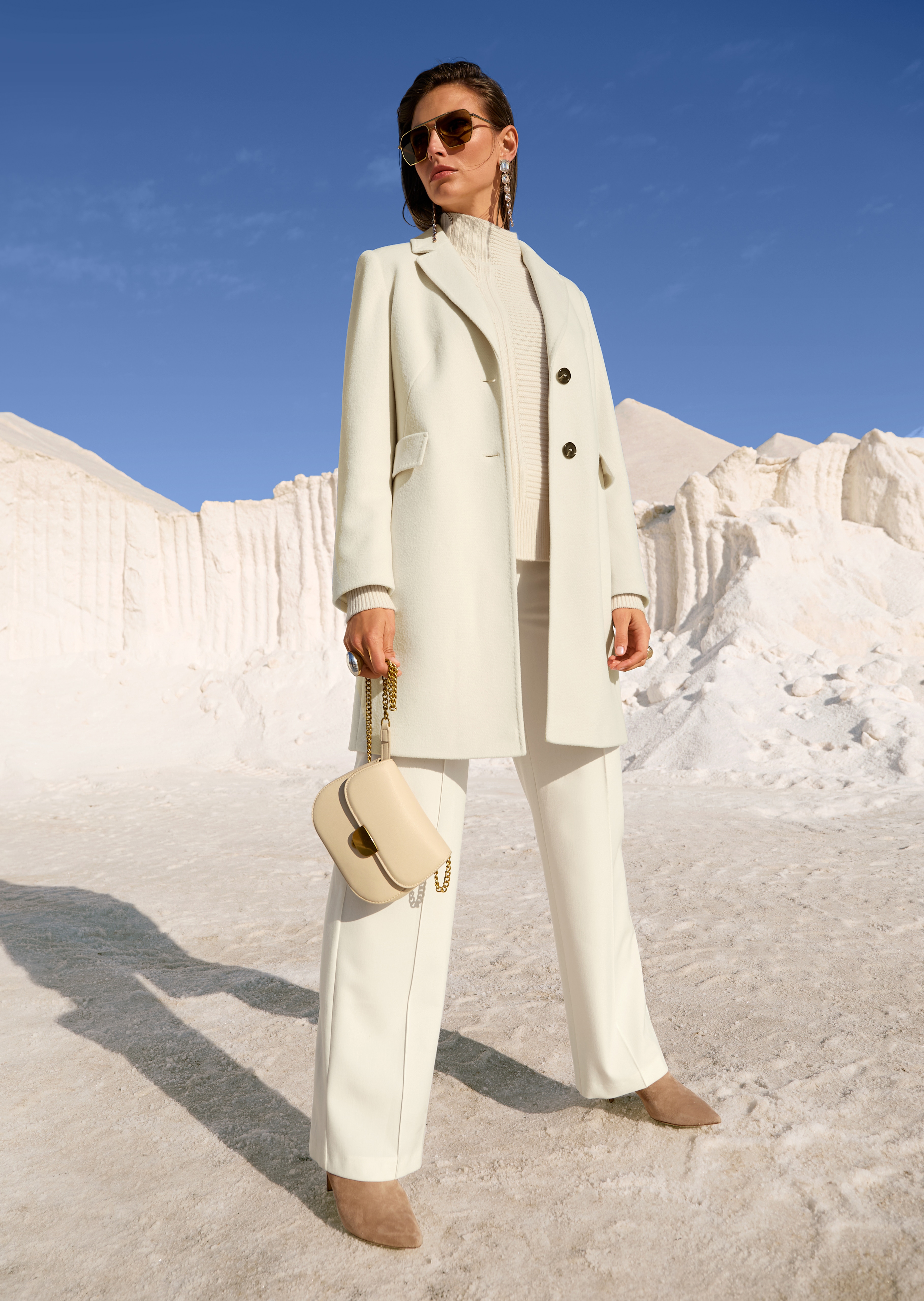 Wer die cleane, klassisch schlichte Variante bevorzugt, liegt bei diesem Mantel genau richtig! Die klare Linienführung und schnörkellose Verarbeitung machen ihn vielseitig kombinierbar und verleihen dem Look ein edles Finish. Ein klassischer Reverskragen, eingearbeitete Taschen mit Zierpatte und der rückseitige Gehschlitz unterstreichen die stilvolle Charakteristik. Dekorativer Zierstich an Vorderseite und Patten sowie Zierknöpfe an den Ärmelkanten runden den Style gekonnt ab. Ein Partner mit Klasse und für jede Gelegenheit!