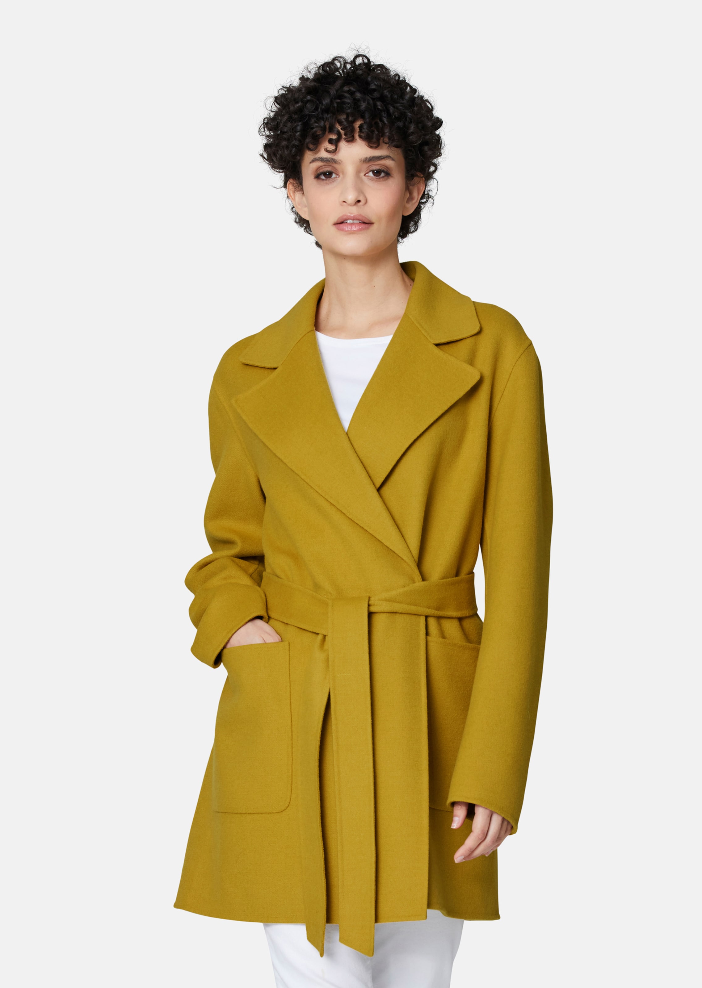 Edel-lässige Kurzmäntel sind und bleiben Trend! So wie dieses sehr schicke Doubleface-Modell, das mit einem Bindegürtel und Gürtelschlaufen auf Figur gestylt wird. Der Mantel ist schön classy mit Reverskragen, überschnittener Schulterpartie, aufgesetzten Taschen und langen Ärmeln designt. Er hat innen eine fein gearbeitete, zweireihige Druckknopfleisten und einen Kettenanhänger.