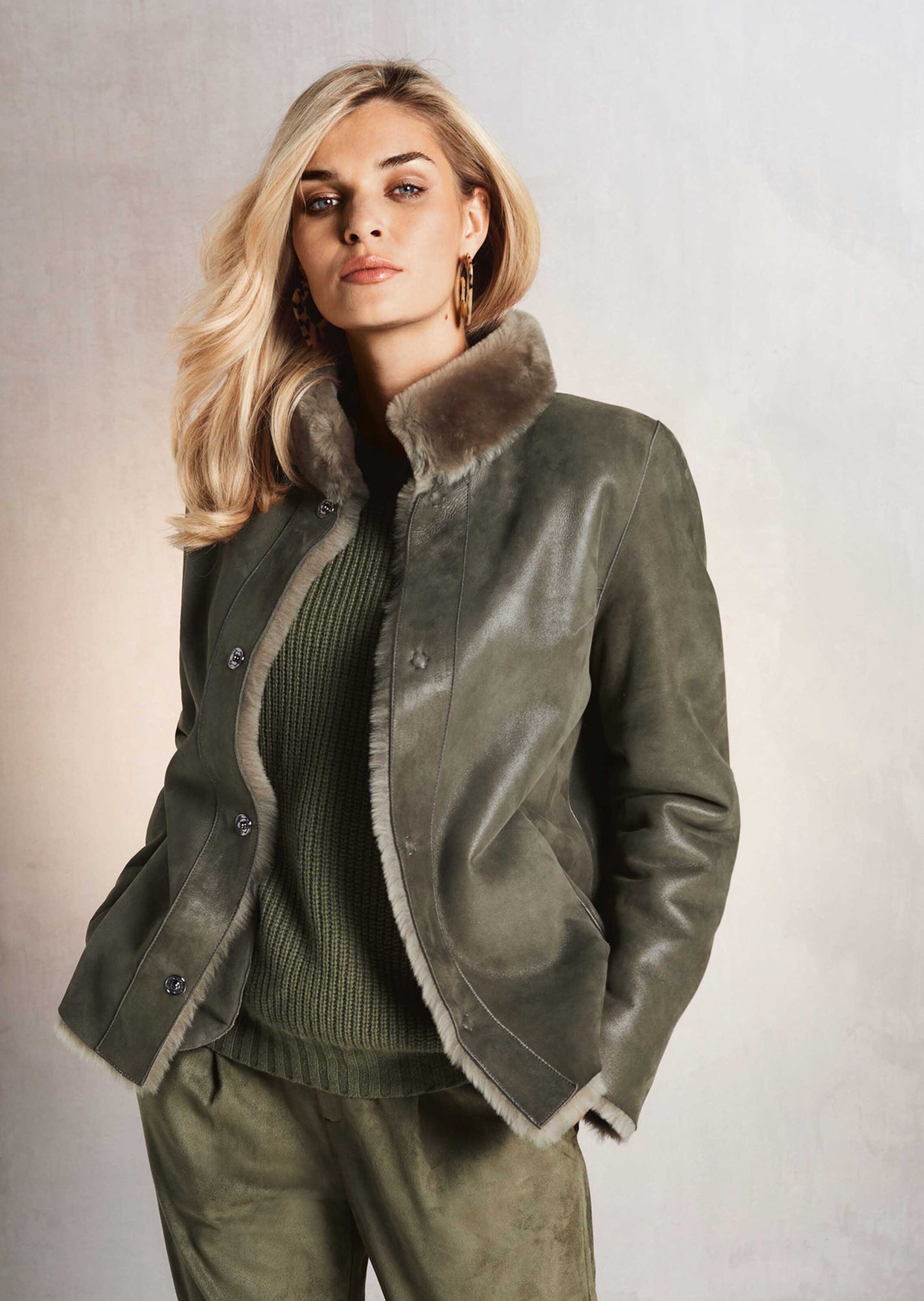Der pure Winterluxus! Die Lammfelljacke zum Wenden ist eine Allrounderin für die unterschiedlichsten Stylings. Tragen Sie das naturgewachsene Lammfell einmal auf der kuscheligen Fellseite und ein anderes Mal auf der wertvollen Lederseite – ganz nach Anlass und Modelaune. Durch die edle Farbgebung können Sie sie zu den unterschiedlichsten Tönen kombinieren. Wir haben sie im modernen Style mit Stehkragen, Langarm, Lederaufhänger, verdeckten Druckknöpfen und Schubtaschen gestaltet. Ob lässig oder elegant ergänzt: Die mollig warme Winterjacke verwöhnt Sie auch an kühlen Tagen mit purem Luxus.