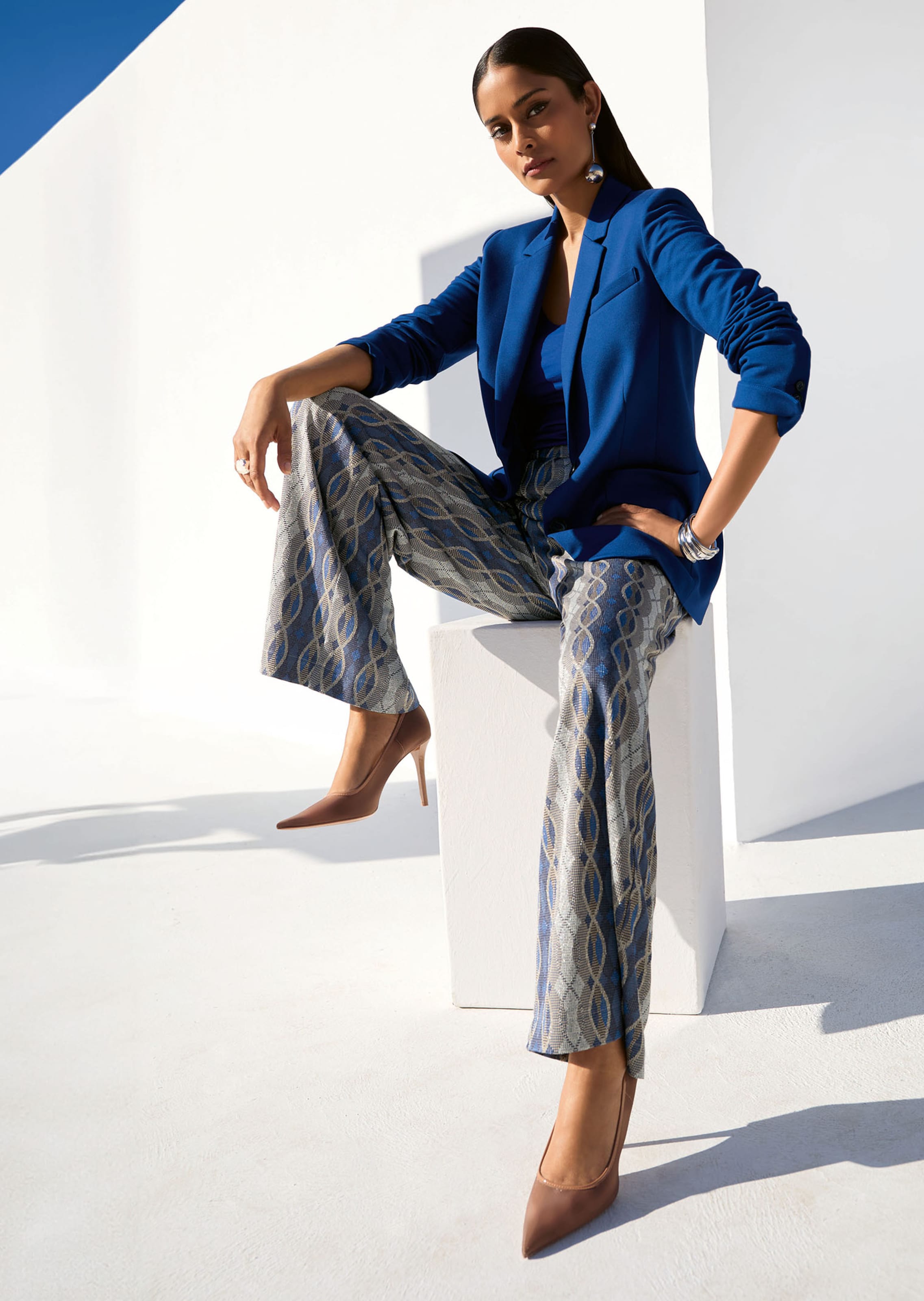 Dieser lässige Longblazer aus komfortabler Jersey-Qualität ist der ideale Begleiter für entspannte, modische Outfits. In einer legeren Longform gestaltet, bietet der Blazer einen klassischen langen Reverskragen und einen praktischen Knopfverschluss. Zwei aufgesetzte Taschen und die Ziertasche im Brustbereich verleihen ihm eine lockere Ausstrahlung. Die langen Ärmel mit geknöpftem Saumschlitz sorgen für zusätzlichen Tragekomfort.