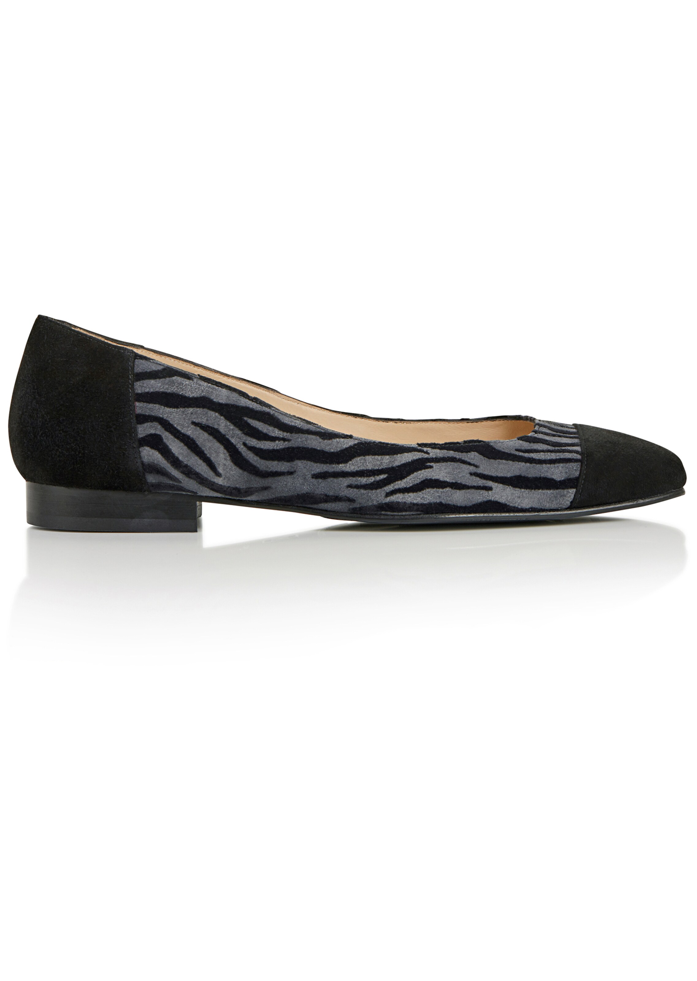 Eine Ballerina-Variante in trendstarkem Look! Animal-Prints sind in dieser Saison ein Muss für jede Garderobe und verleihen angesagten Kombinationen ein aufregendes Finish. Das aktuelle Muster wird an Spitze und Ferse von unifarbenen Partien eingerahmt und ist ein wichtiges Stilmittel der neuen Saison. Weiches Velours-Leder präsentiert sich in modischer Karree-Form, ist angenehm im Griff und verleiht den Lieblingsstücken einen edlen Rahmen. »Handgefertigt in Spanien« ist ein Güte-Siegel, das mit einem Plus an Luxus in Sachen Material und Verarbeitung überzeugt.