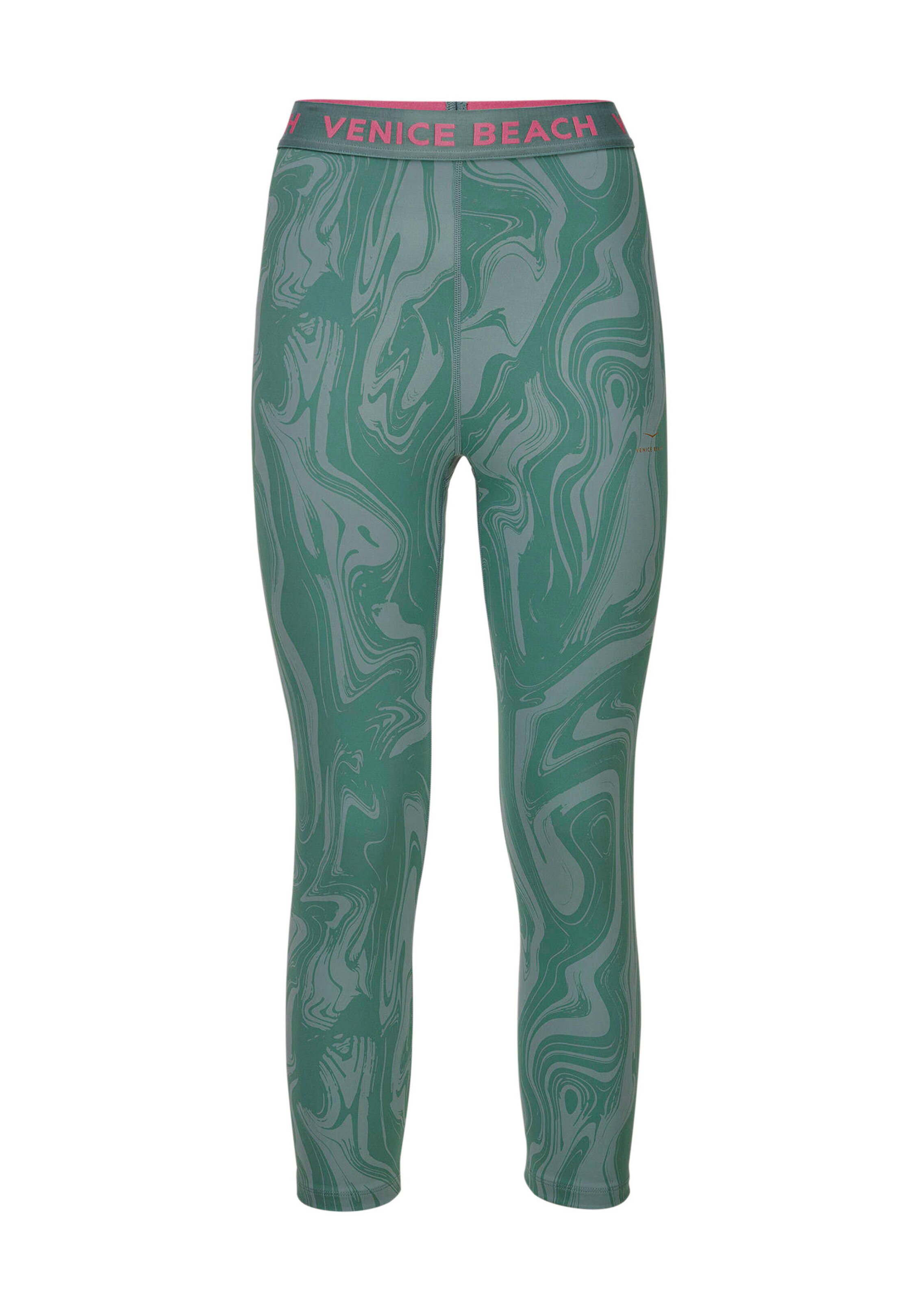 Komfort, der inspiriert: Diese 7/8-Leggings von VENICE BEACH liegt weich auf der Haut und passt sich dank Elasthananteil jeder Bewegung an. Der breite, elastische Bund mit kontrastfarbenem Logo sorgt für sicheren Halt, während die verspielten, tonigen Drucke und dezenten Ziernähte moderne Highlights setzen. Ob beim Sport oder in der Freizeit – die Leggings macht jede Bewegung mit Stil.