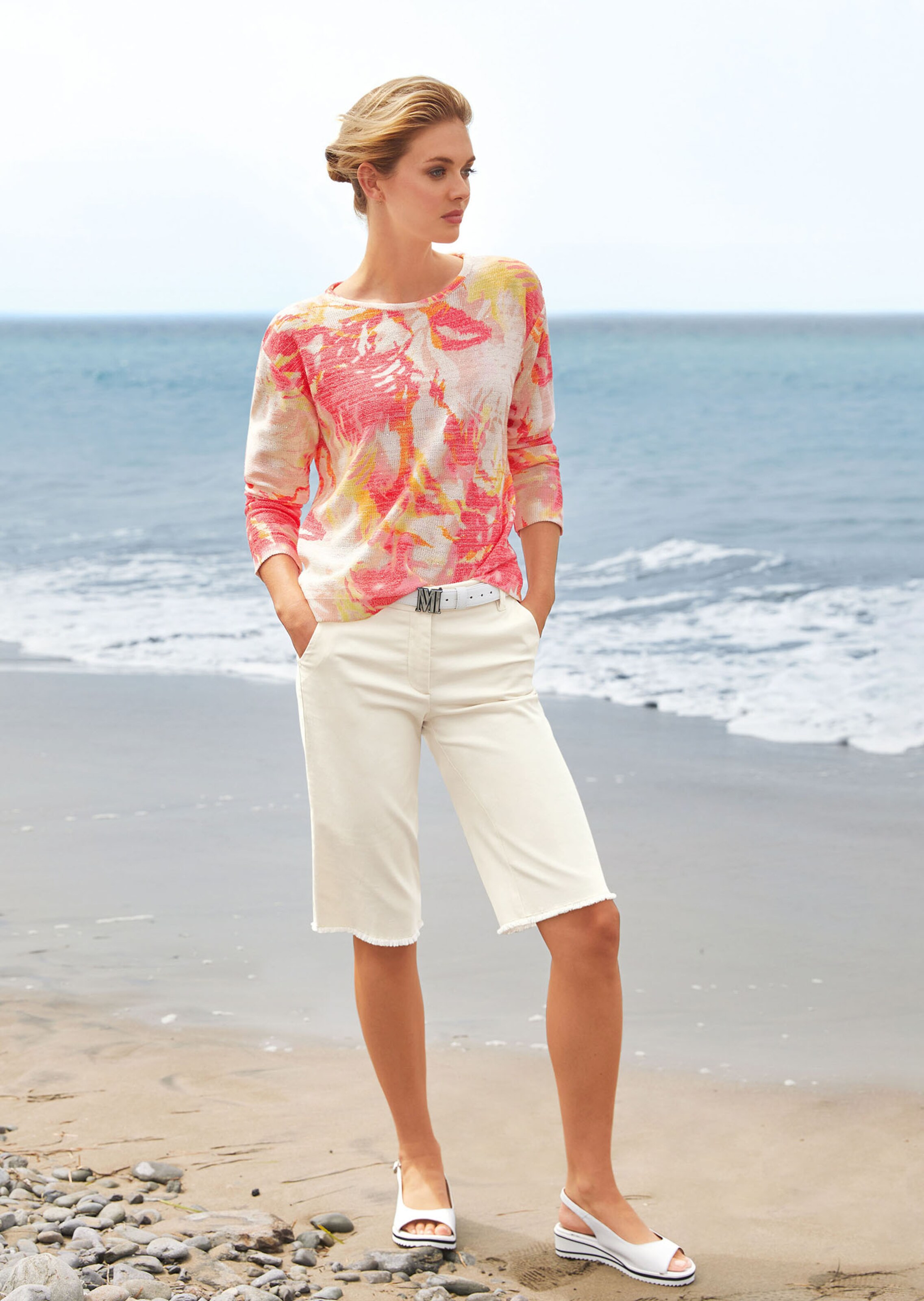 Verleihen Sie Ihrem Styling den Farb-Touch! Der leichte Strickpullover wirkt durch das italienische Paillettengarn mit silberfarbenen Glanzeffekten edel. Sein Viskose-Mix trägt sich angenehm. Der Print macht aus jedem Stück ein Unikat. Dank der Vielfarbigkeit können Sie ihn gut kombinieren.