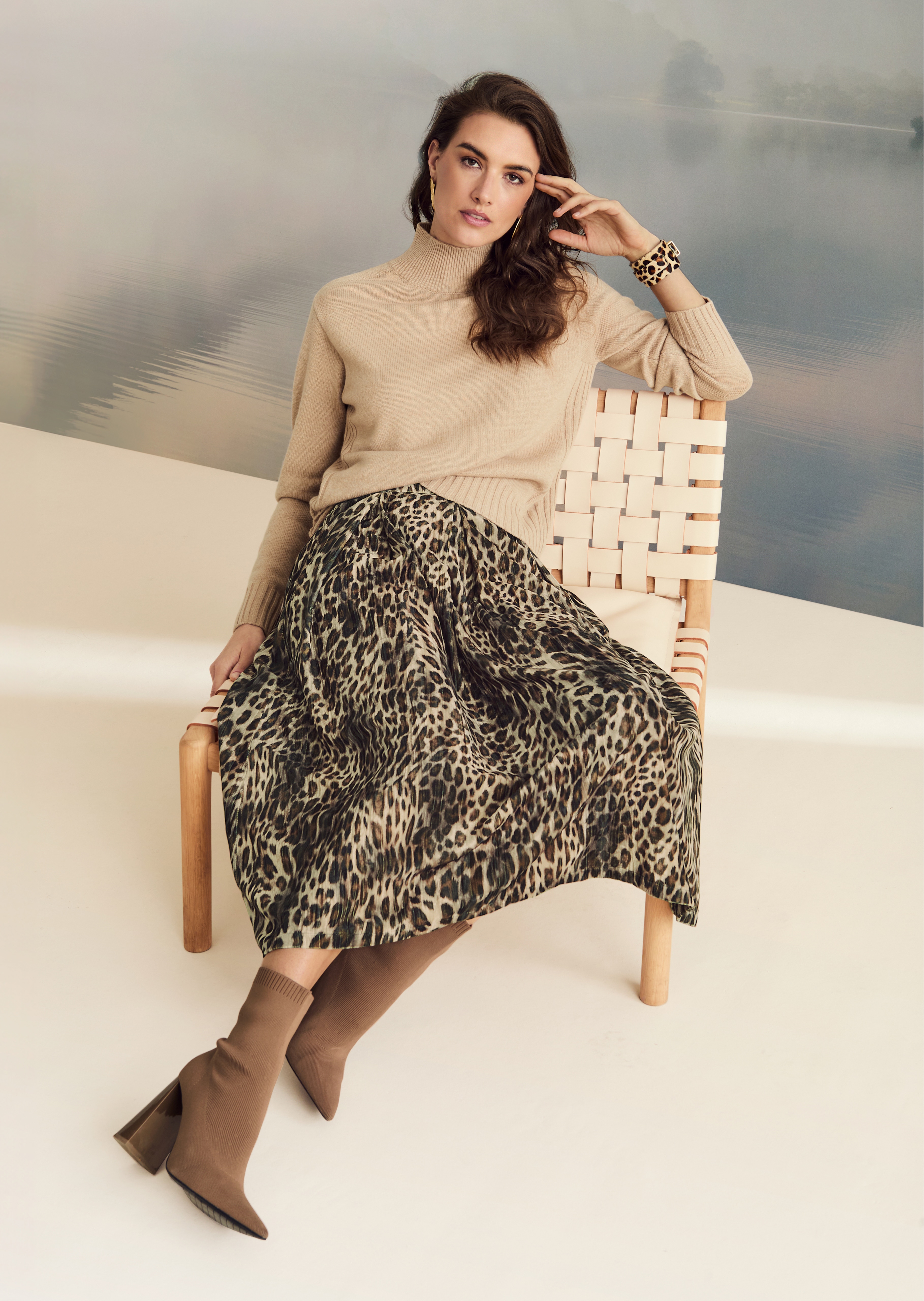 Ein Hauch von Raffinesse, gepaart mit zeitloser Eleganz. Edler Crash-Samt in aufregendem Animal-Print verleiht dem Rock eine ausdrucksstarke Note. Sein samtiger Schimmer sorgt für besonders modische Effekte und unterstreicht den stilvollen Charakter des Modepartners. Der elastische Komfortbund verspricht höchsten Tragekomfort und ist bequem zum Schlüpfen. Vorderseitige Kellerfalten bringen Schwung ins Design und verleihen dem Rock eine wunderbar fließende Silhouette. Dezente, in die Naht eingearbeitete Taschen bieten praktischen Stauraum und machen den Style zu einem vielseitigen Modepartner. Ob als stilvolle Ergänzung für elegante Abendlooks oder als trendstarker Begleiter im Alltag – dieser Rock lässt sich kreativ stylen und verleiht jedem Outfit das gewisse Etwas. Die Varianten reichen dabei von klassisch feminin bis zum spannenden Stilbruch.
