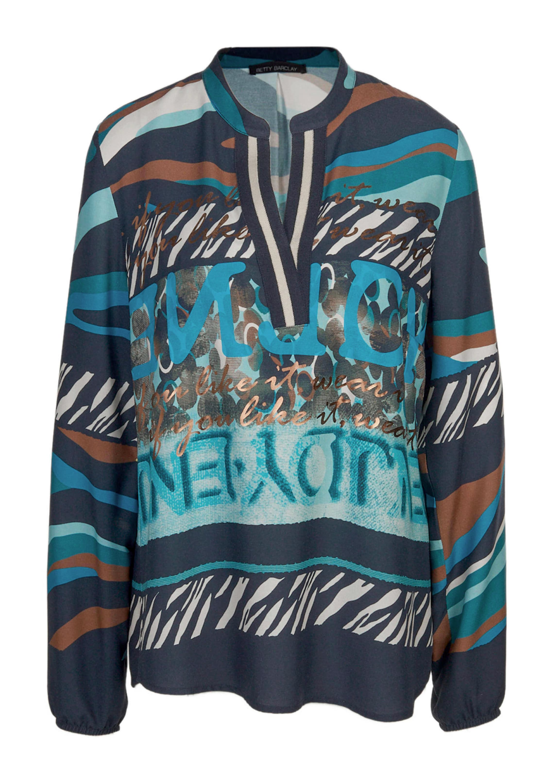 Bluse in gemustertem Druck von BETTY BARCLAY für Ihre Alltags-, Urlaubs- oder Business-Mode! In längerer, ausgestellter Passform mit langen Ärmeln begleitet Sie das Modell überall hin. Ein schicker Stehkragen veredelt den Look. Bequem zum Schlüpfen und aus weich fließender Viskose ein stylischer Allrounder für jede Gelegenheit. Länge in Gr. 38 ca. 66 cm. Styling-Tipp: Die lässige Longform sollten Sie mit schmalen Hosen oder Jeans kombinieren – so schaffen Sie einen Ausgleich zur bequemen Weite und sind auch für die City schnell perfekt angezogen!