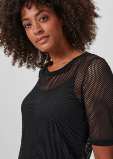 Das Netzshirt feiert ein fulminantes Comeback und avanciert zum luftigsten Must-have des Sommers. Lässig im Schnitt ist es mit halblangem Ärmel und Rundhals-Ausschnitt gestaltet. Mit daruntergezogenen Tops und Blusen in unterschiedlichen Farben lassen sich immer wieder neue Wow-Effekte erzielen.