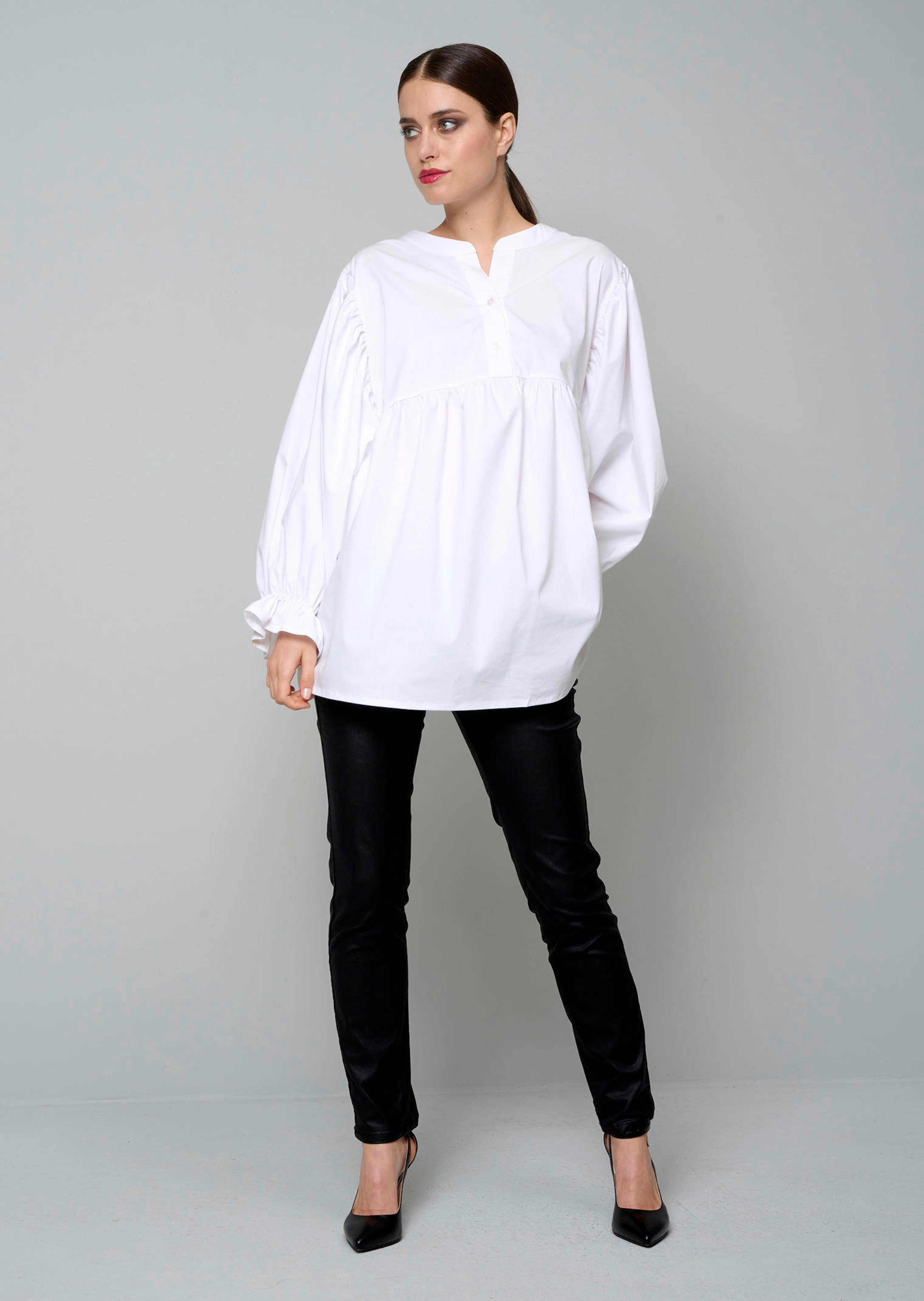 Entdecken Sie Ihren ganz individuellen Favoriten – wie zum Beispiel diese Oversized-Schlupfbluse. Besonders schöne Details sind die langen Fledermausärmel mit Gummizug und Volants. Sie hat einen Rundhalsausschnitt mit V-Ausschnitt und Knopfleiste. Angenehme Baumwoll-Popeline.