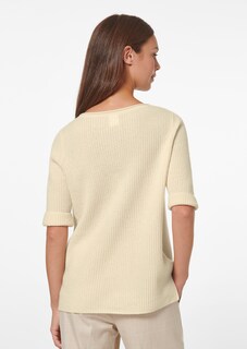 Wertvolles Kaschmirgarn ist durchaus auch an wärmeren Tagen ein Thema. Mit zauberhafter Perlfang-Struktur setzt es Looks von lässig bis elegant edel in Szene. Die legere Silhouette des Pullovers umspielt locker die Figur und verwöhnt mit unvergleichlich weichem Trage-Luxus. Der lässige Halbarm-Pullover wird am Rundhals-Ausschnitt von einer aufwendigen Rollkante akzentuiert.