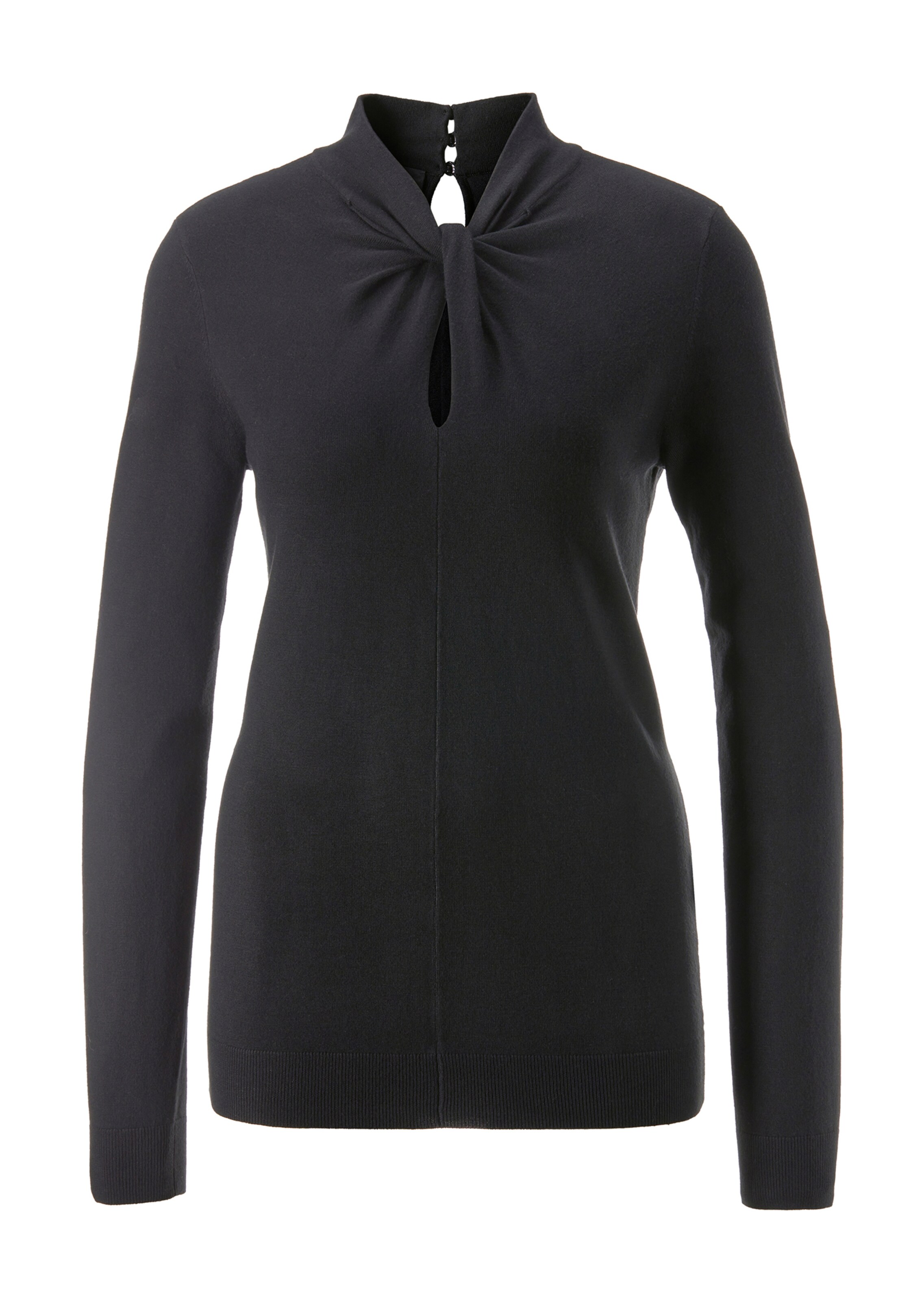 Ein femininer Effekt: Der Pullover mit Knoten und Stehkragen. Der edle Glattstrick im Viskose-Mix trägt sich angenehm weich auf der Haut. Wir haben ihn leicht tailliert und anliegend mit Langarm, breiten Bündchen und rückseitigem Knopfverschluss mit Schlitz gestaltet. Durch seinen Uniton können Sie ihn gut kombinieren – tonig oder im Kontrast.