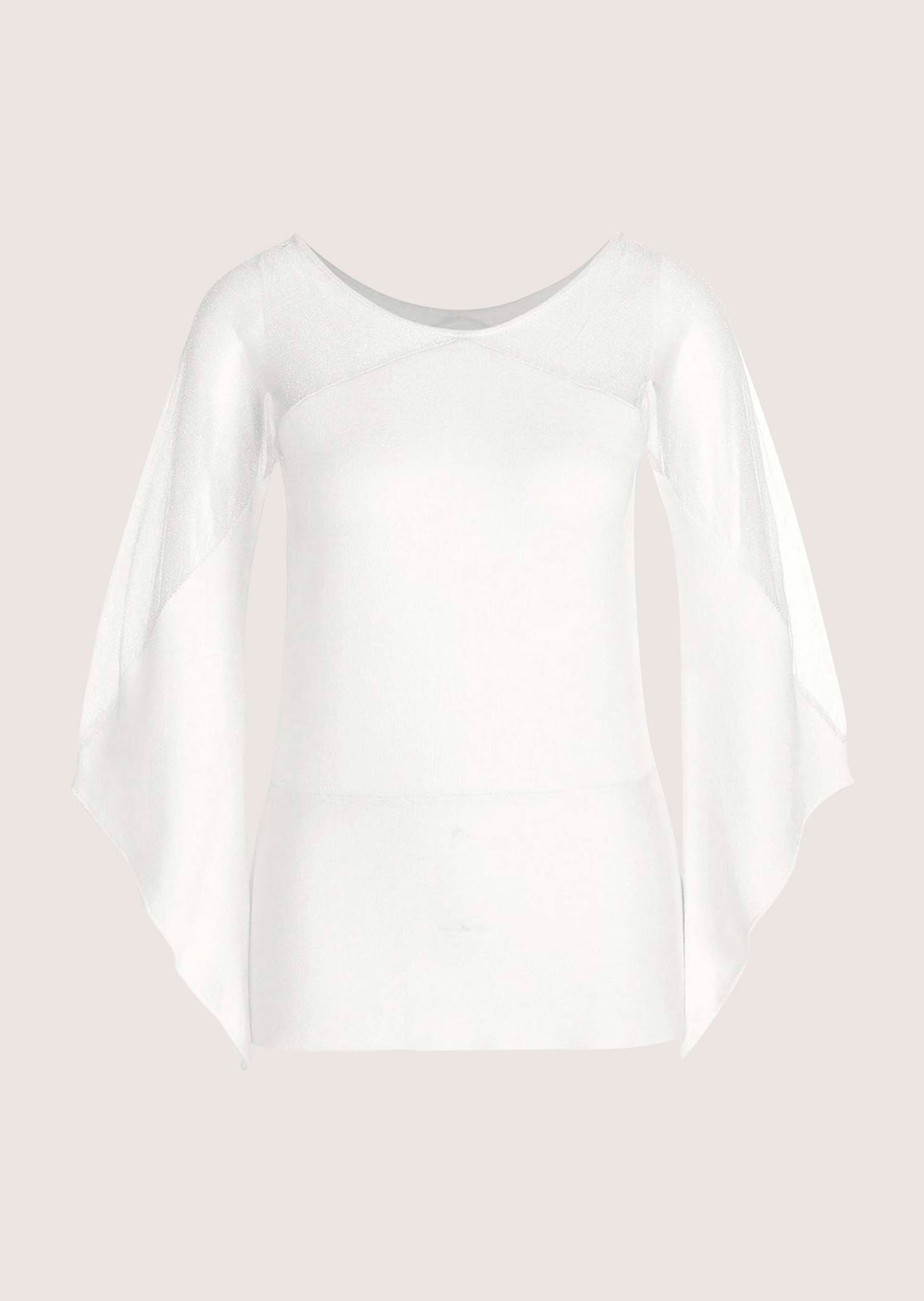 Pullover in angenehm leichter Qualität. Modischer Einsatz in transparenter Optik. Mit Glanzgarnen gearbeitet. Angesetztes Schößchen. Länge in Gr. 38 ca, 62 cm.