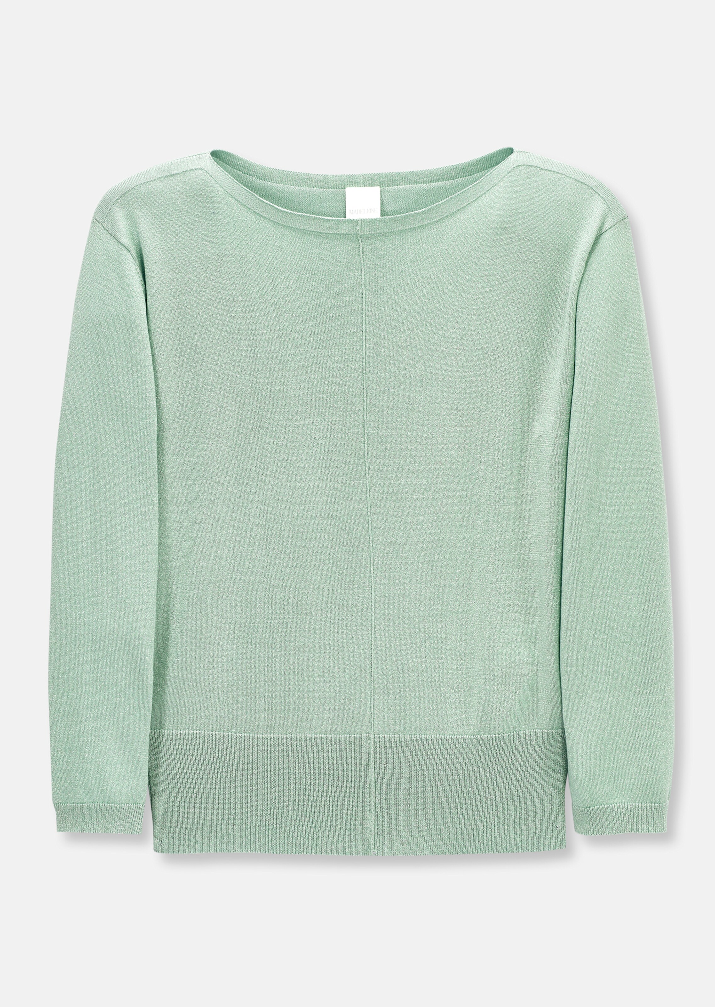 Ein Strickpullover, der mit seinem sommerlich leichten Strick und seinem wertvollen Glanzgarnakzent begeistert. Der glänzende Pullover im legeren Sweatshirtstyle verbindet auf wunderbare Weise lässige und luxuriöse Elemente. Gestaltet ist er mit langen Ärmeln, überschnittener Schulter, Mittelnaht, U-Boot-Ausschnitt und breitem Rippstricksaum. Ob elegant oder lässig kombiniert: der Strickpullover bringt einen Hauch Glamour in den Look.