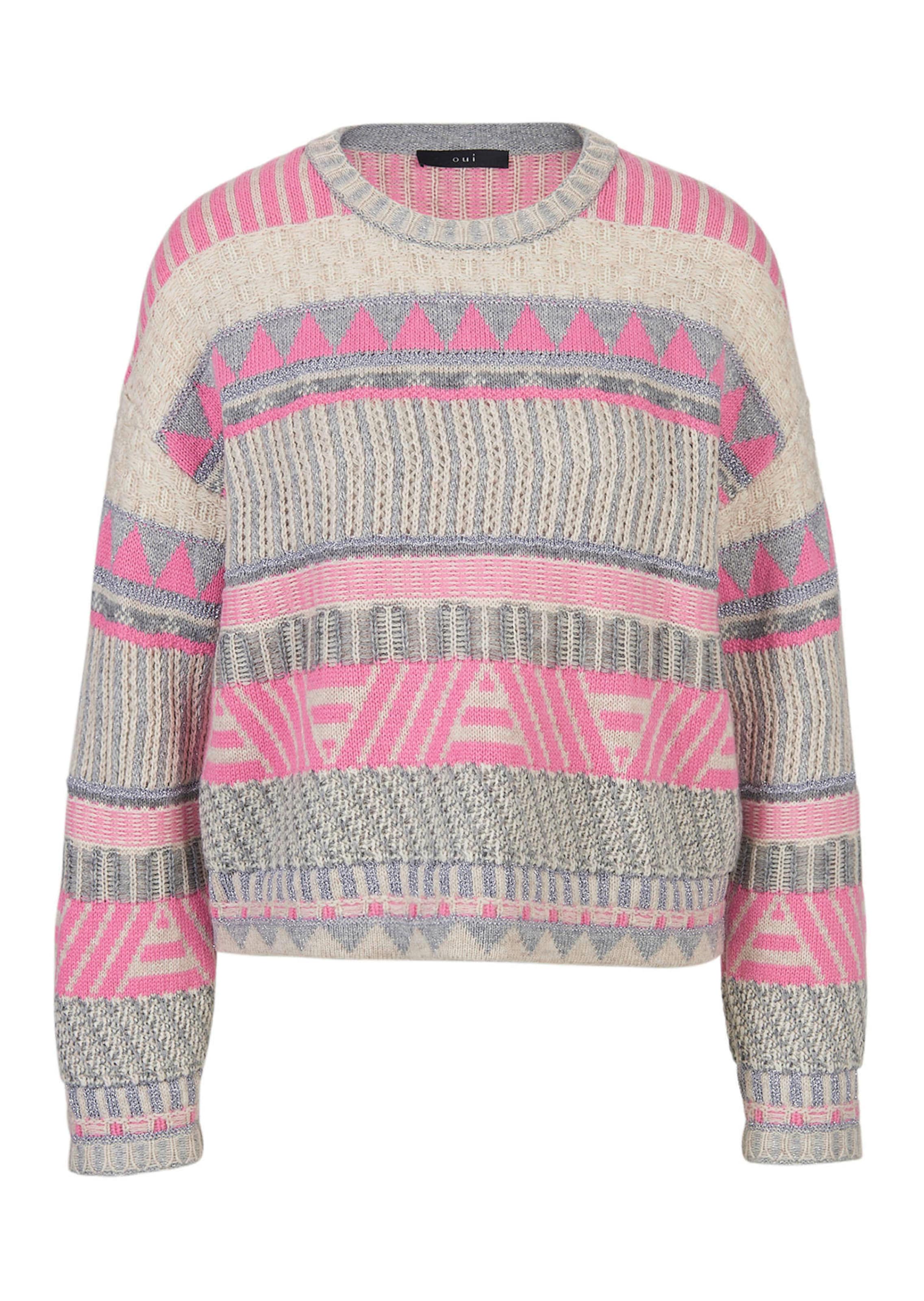 Gemütlich, kuschelig, warm und weich ist der Pullover von OUI. Aus einer angenehmen Wollmischung und in legerer Passform trägt er sich äußerst bequem. Besonders schön ist das vielfarbige Muster mit eingestricktem Logo. Glanzgarn setzt edle Akzente. Der Rundhalsausschnitt ist mit einer Strickblende verarbeitet, die Abschlüsse sind mit Bündchen versehen. Länge in Gr. 36 ca. 52 cm. Styling-Tipp: Das Kuschelmodell lässt sich auch modisch kombinieren, zum Beispiel mit einer klassischen Hemdbluse darunter. Lassen Sie die Bluse unter dem Pullover hervorschauen – der Undone-Look ist topaktuell!