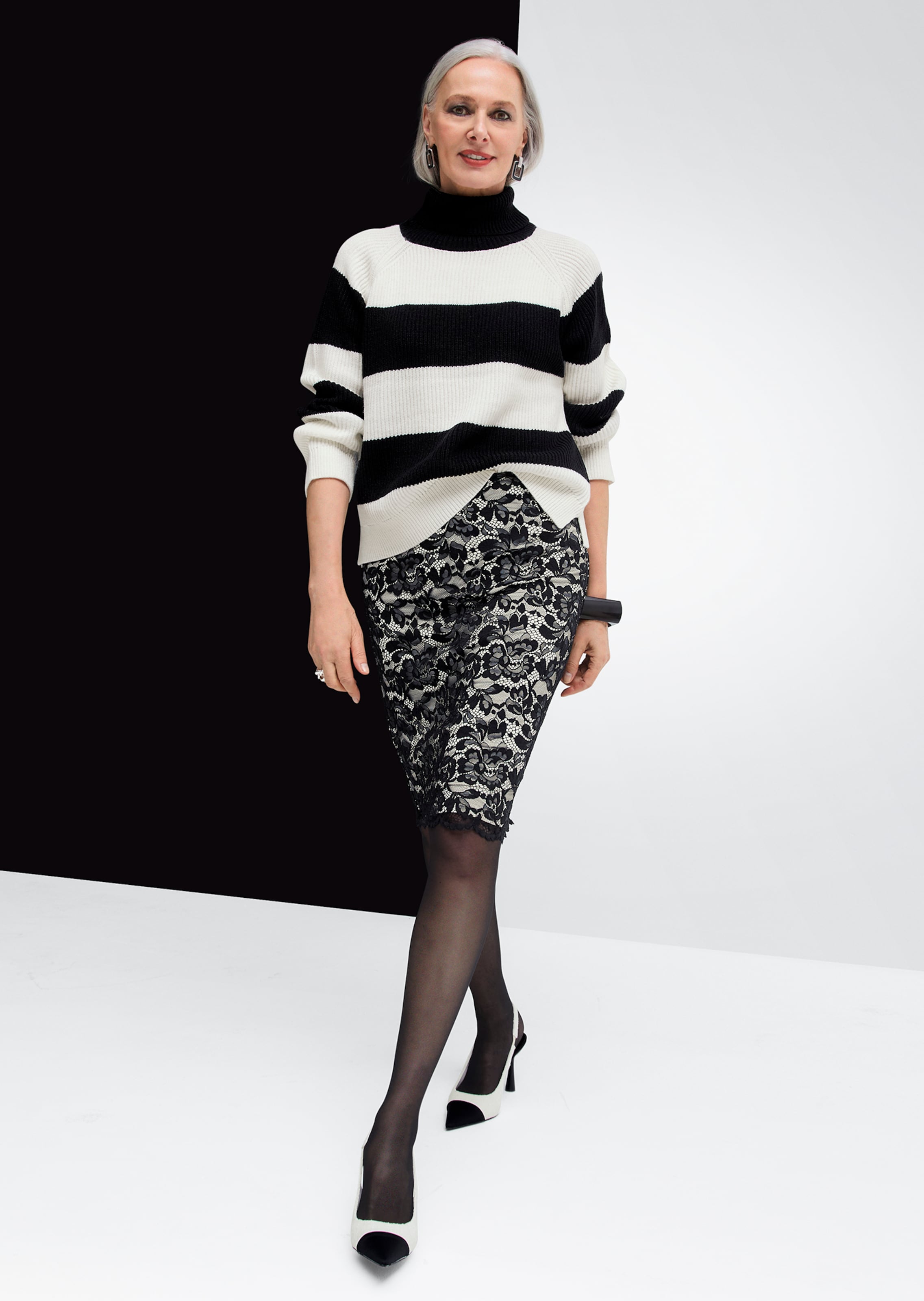 Ein zauberhafter Pullover, der mit hautschmeichelndem Tragekomfort und trendstarker Optik begeistert. Der weiche Patentstrick aus trageangenehmer Garnmischung präsentiert sich in angesagter Kurzform und mit markantem Blockstreifen-Design. Ein hoher, anschmiegsamer Rollkragen, lange Raglanärmel und lässige Seitenschlitze runden den Look ab. Die Saumkante schließt mit formstabilem Rippstrick ab und sorgt für einen perfekten Sitz. Ideal für stilbewusste Modefans!