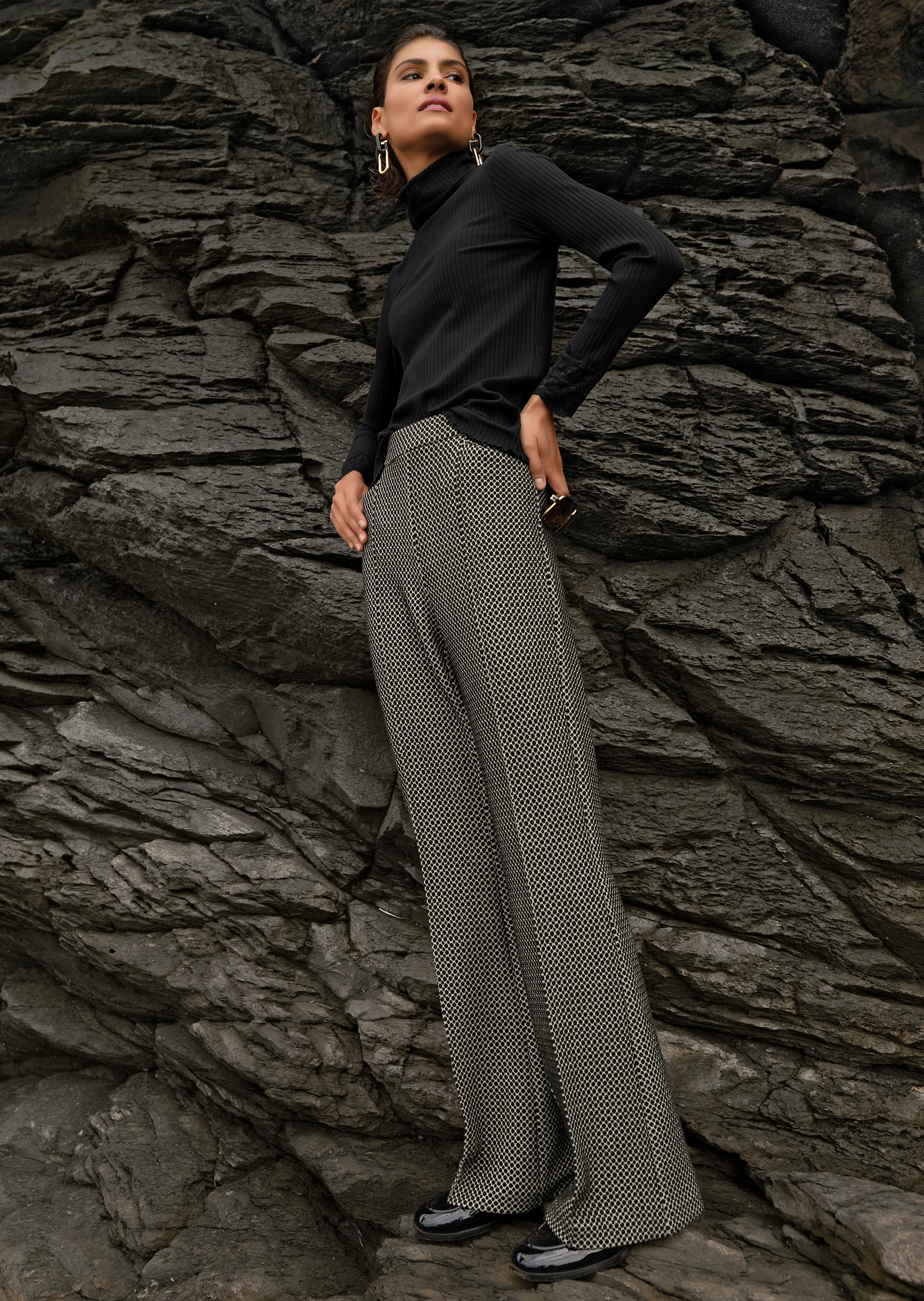 Ein Basic-Shirt, das mit stylischer Raffinesse glänzt und solo wie darunter gezogen eine traumhafte Figur macht. Fein gerippt und figurnah gearbeitet punktet es mit stilvoller Modernität. Bequemer, hautsympathischer Stretch präsentiert sich hier mit schmeichelndem Rollkragen und schlanken, langen Ärmeln. Wertvolle Overlock-Kanten setzen zauberhafte Akzente und werden an den Ärmelabschlüssen von edler Spitze in Szene gesetzt.