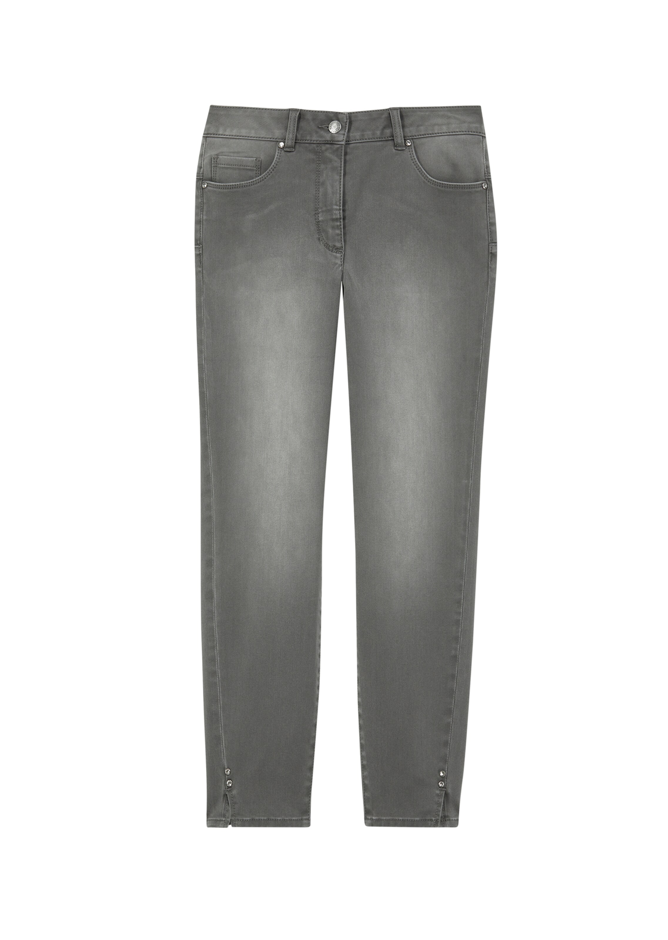 Die Lieblingsjeans erhält ein cooles Upgrade – mit einem brillanten Modestatement. Applizierte Strassnieten werden zum raffinierten Stilmittel und setzen an Taschen und kleinem Saumschlitz dekorative Akzente. Knackig und trotzdem komfortabel im Sitz zeigt sich die 7/8-Jeans in schlankem 5-Pocket-Style und ist mit Formbund, Gürtelschlaufen und Rückenpasse gestaltet. Entdecken Sie auch bei dieser Hose die typischen Madeleine-Details wie M-Logo-Knopf und -Nieten. Eine Fashion-Favoritin, mit der sich immer wieder neue Looks zaubern lassen – ob sportlich im angesagten Athleisure-Stil oder – mit eleganten Styling-Partnern – souverän im Office-Look.