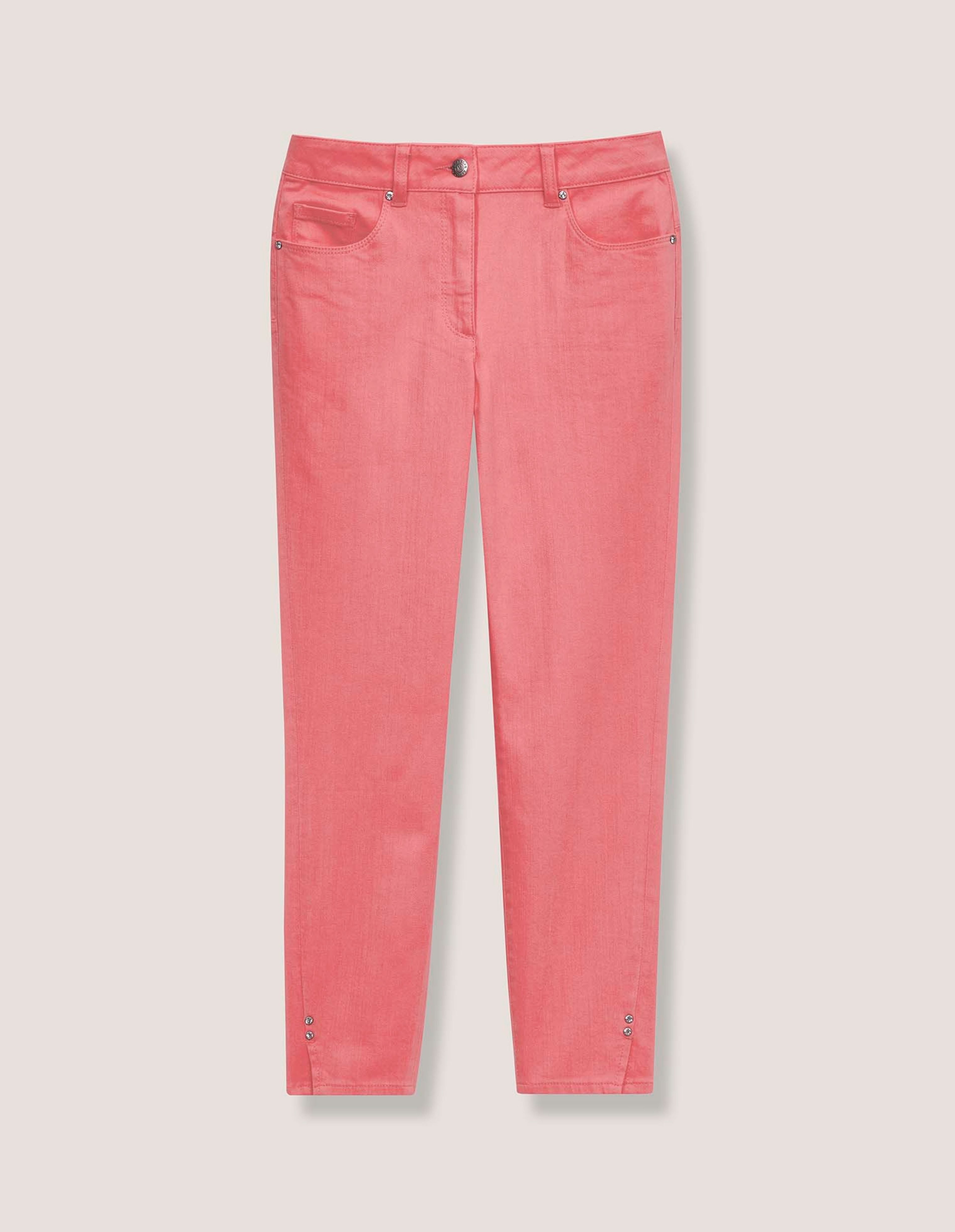 Die Lieblingsjeans erhält ein cooles Upgrade – mit einem brillanten Modestatement. Applizierte Strassnieten werden zum raffinierten Stilmittel und setzen an Taschen und kleinem Saumschlitz dekorative Akzente. Knackig und trotzdem komfortabel im Sitz zeigt sich die 7/8-Jeans in schlankem 5-Pocket-Style und ist mit Formbund, Gürtelschlaufen und Rückenpasse gestaltet. Entdecken Sie auch bei dieser Hose die typischen Madeleine-Details wie M-Logo-Knopf und -Nieten. Eine Fashion-Favoritin, mit der sich immer wieder neue Looks zaubern lassen – ob sportlich im angesagten Athleisure-Stil oder – mit eleganten Styling-Partnern – souverän im Office-Look.