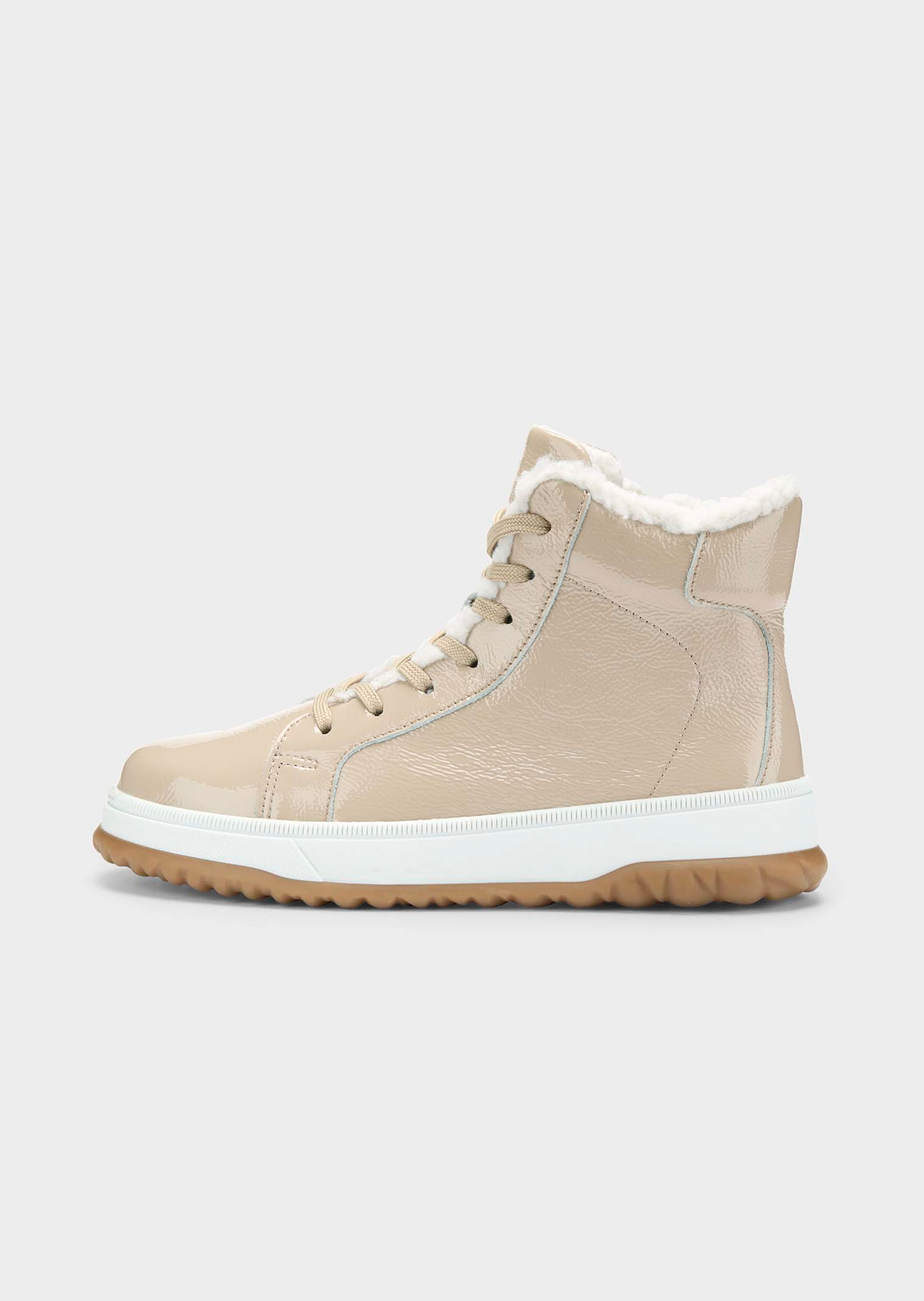 Kalte Füße gehören der Vergangenheit an! Dieser Schnürboot in H-Weite ist wie gemacht für frostige Tage – mit kuscheligem Teddyfutter, weichem Textilinnenleben und einem angenehm leichten Laufgefühl. Das glänzende Lackleder verleiht dem Design eine modische Note. Dank Schnürung und Reißverschluss lässt sich der Schuh bequem anziehen. Das Wechselfußbett und die rutschfeste Sohle sorgen für zusätzlichen Komfort. Perfekt zu stylischen Winter-Essentials wie zum Beispiel Steghosen, Strickkleidern oder Denim