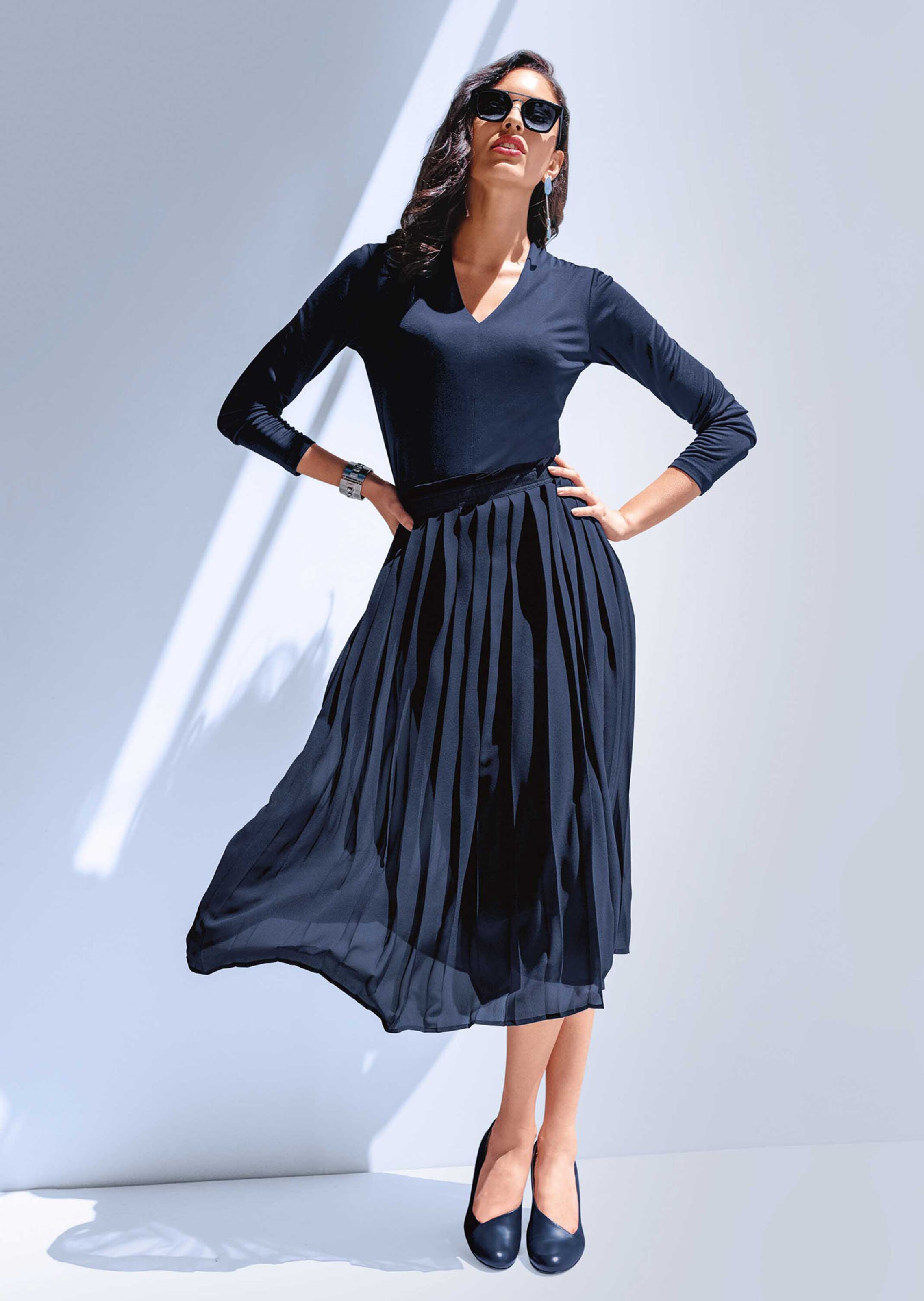 Ein Basic-Shirt, in dem Sie sich glänzend fühlen werden. Der hochwertige Jersey aus reiner Seide punktet mit edler Geschmeidigkeit und feinem Schimmer, ist zudem knitterarm und formstabil – das macht das Seidenshirt auch im Business und auf Reisen zum idealen Partner. Mit V-Ausschnitt und kleinem Stehkragen zeigt das taillierte Langarm-Shirt auch modisch das gewisse Etwas. Ein universelles Lieblingsshirt, das zu eleganten Pants genauso gut aussieht, wie zu femininen Pencilskirts oder lässigem Denim – ob als Solist oder als perfektes Darunter.