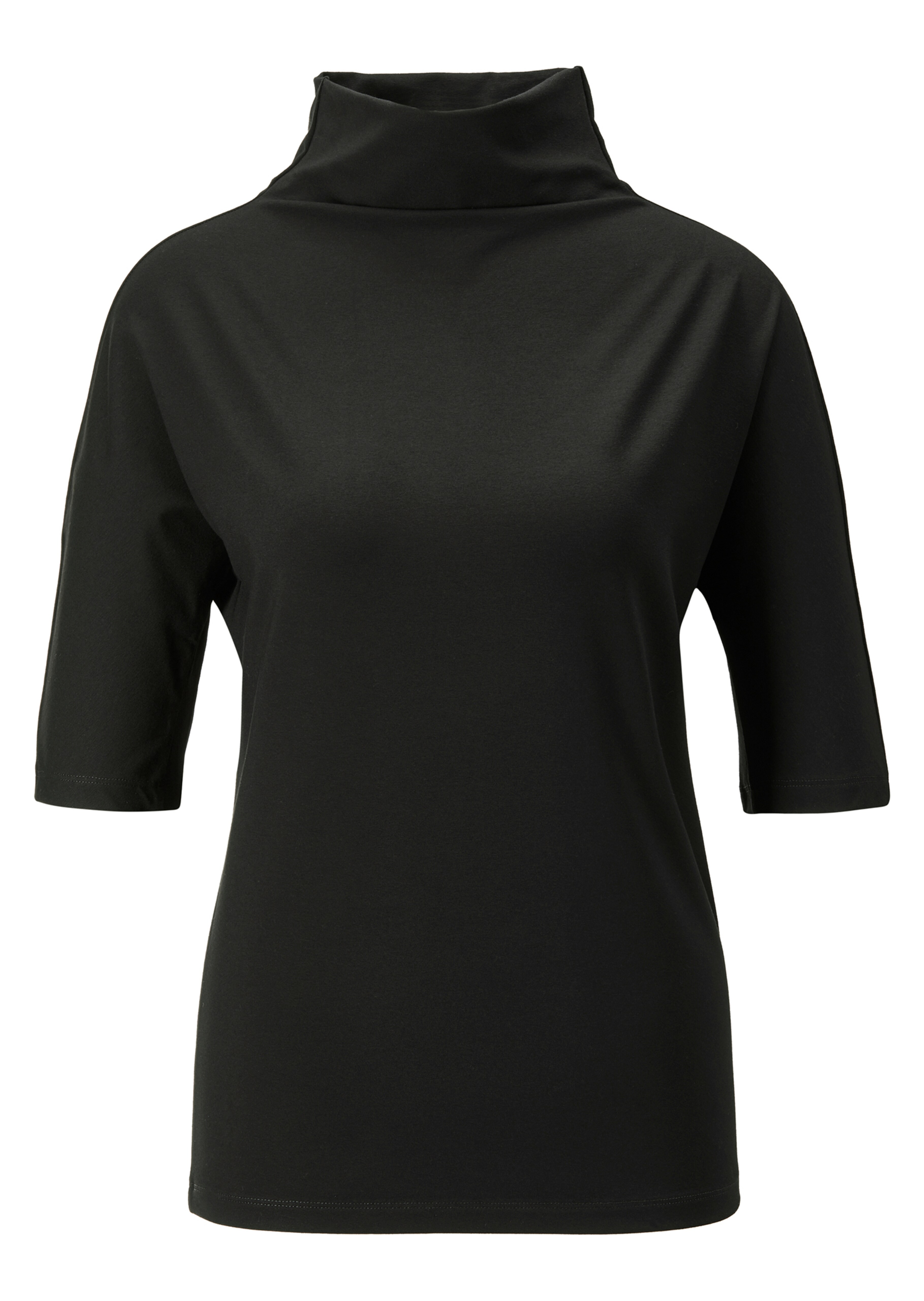 Seine Qualität macht es zum Favoriten edel-lässiger Casual-Stylings. Das Shirt mit Stehkragen bietet sich sowohl als Solist als auch als Darunter an. Sein weicher Viskosestretch lässt nichts abzeichnen. Er ist kofferfreundlich und damit perfekt auch für die Reise und den Urlaub. Die leicht kastige Form ist mit kleinem Strehkragen, kurzen Ärmeln und geradem Saum gestaltet, so können Sie das Basic-Shirt auch gut außerhalb des Bundes tragen. Kombinieren Sie es im Kontrast – sehr schön auch zu schwarzen Partnern für einen stilbetonten Lässiglook der Saison.