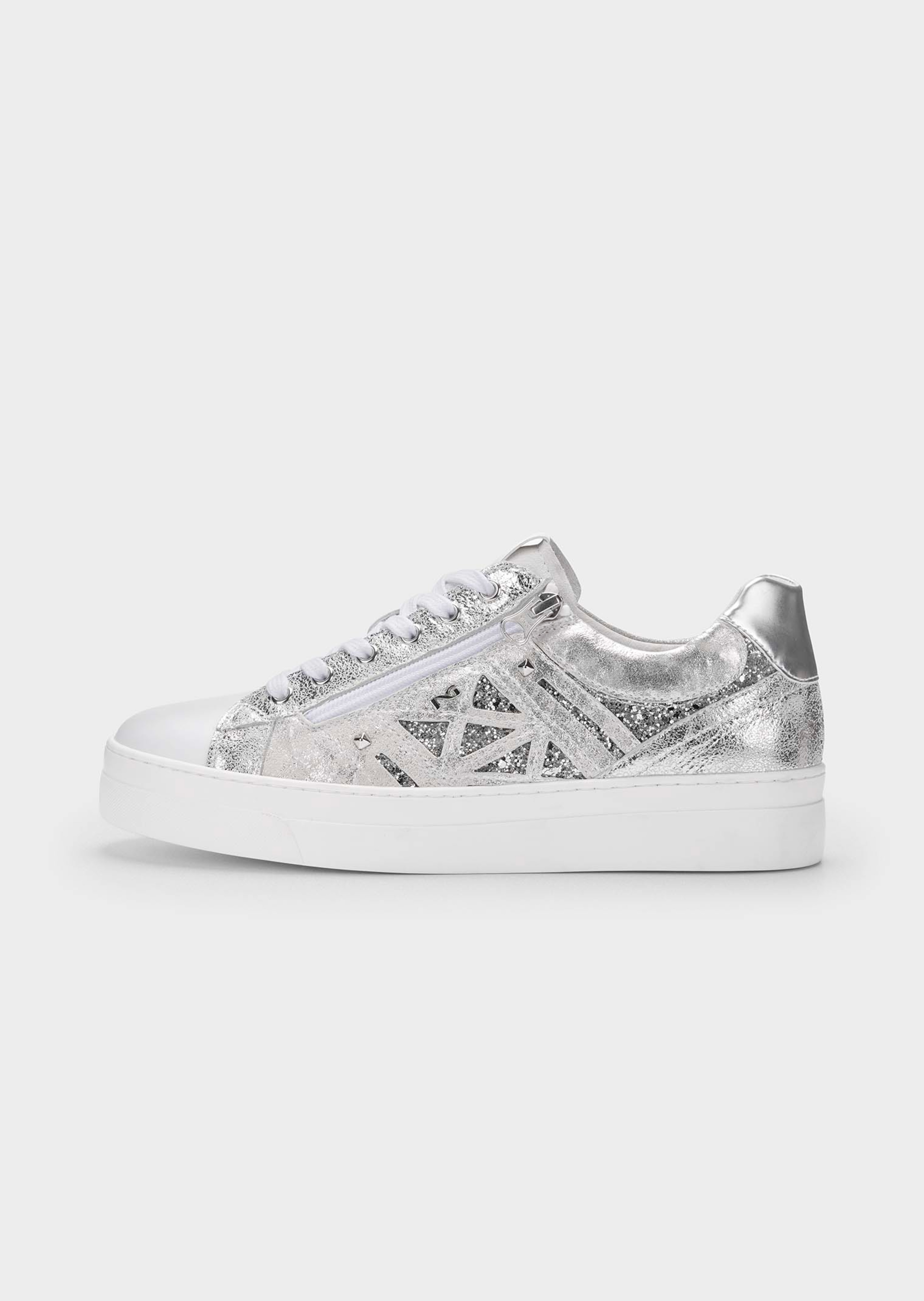 Statement-Piece oder Sneaker? Dieser außergewöhnliche Sneaker von NERO GIARDINI ist beides! Das ausgestanzte Ornamentmuster mit funkelnden Glitzerpartikeln und der schimmernde Foliendruck machen ihn zum absoluten Blickfang. Der seitliche Reißverschluss ergänzt die klassische Schnürung und ermöglicht müheloses An- und Ausziehen. Ein echtes Schmuckstück, das mit seiner G-Weite, der Leder-Innenausstattung und dem Wechselfußbett auch in Sachen Tragequalität überzeugt.