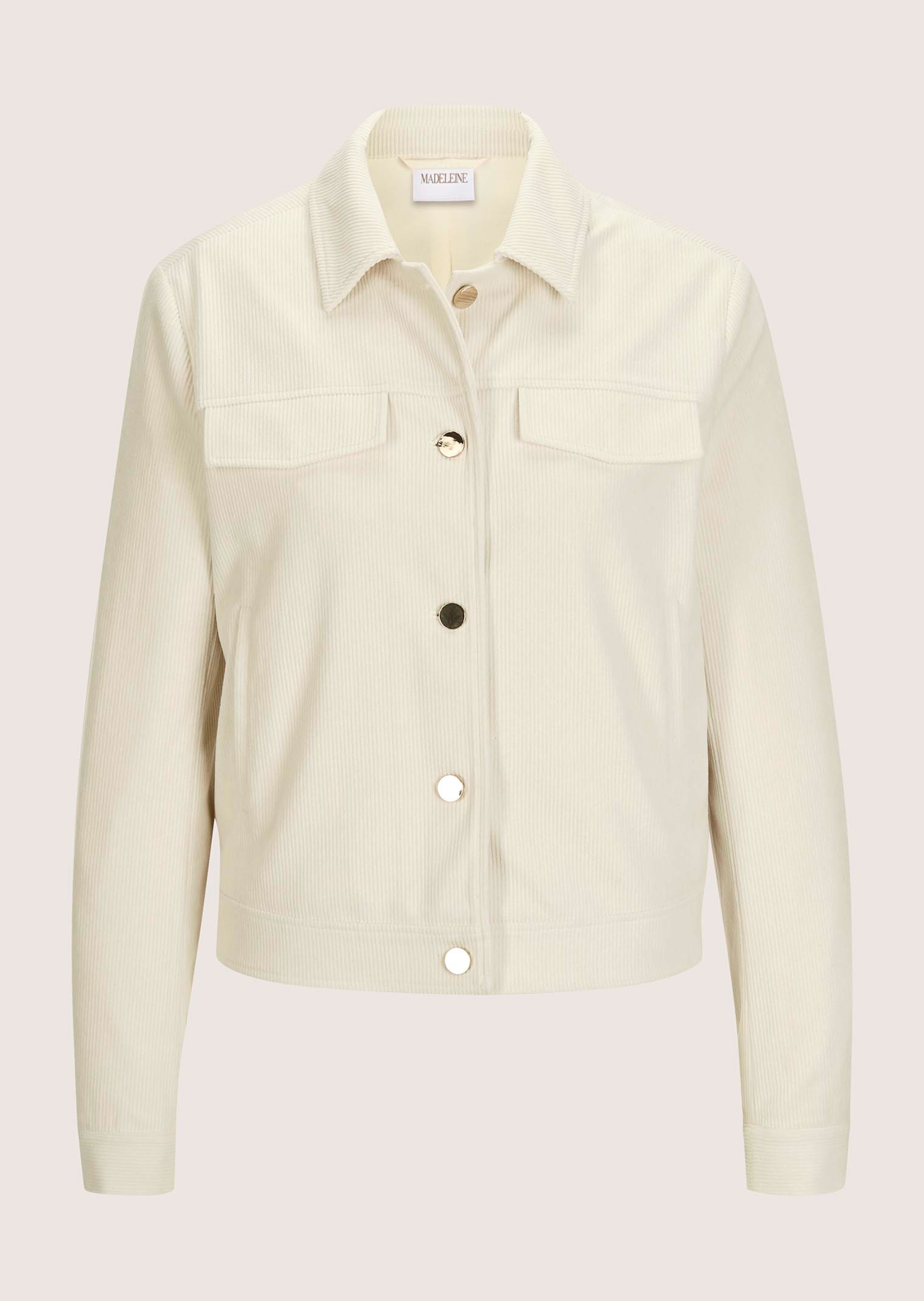 Cord geht immer und ganz besonders in dieser soften Variante. Die kurze Jacke punktet mit klassischem Umlegekragen, angedeuteten Brusttaschen mit Patte und goldfarbenen Metallknöpfen. Ziernähte, Rückenpasse, Manschetten und Leistentaschen vollenden den gepflegten Look. Die angenehm weiche Qualität sorgt für hohen Tragekomfort und macht die Jacke zum unkomplizierten Begleiter für vielseitige Everyday Looks.