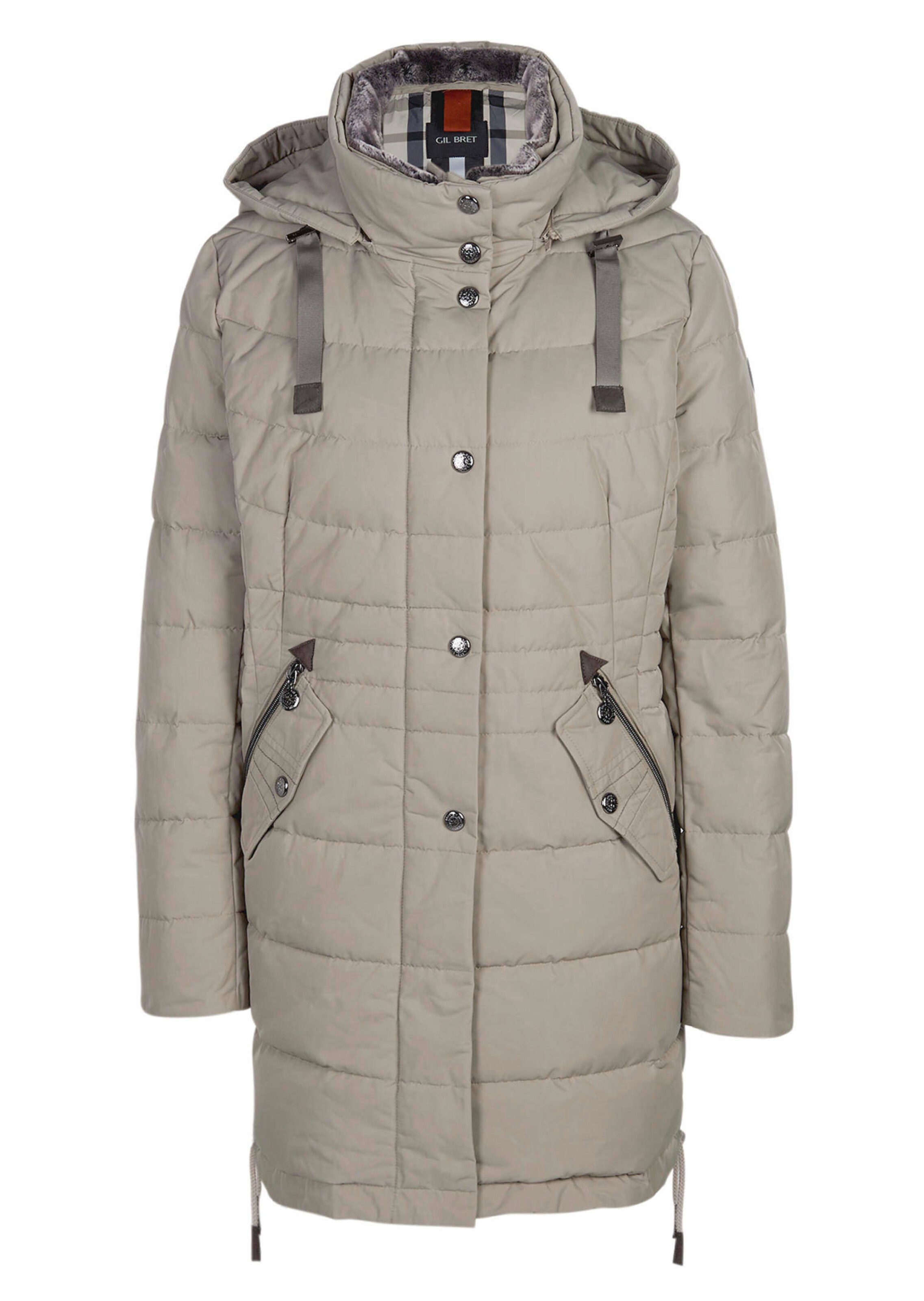 Die Jacke von GIL BRET fällt sofort ins Auge: Aus robuster Shape Memory Ware in klassischem Querstepp zeigt sie ihre Vielseitigkeit in raffinierten Details. Der Stehkragen ist innen mit Plüsch besetzt und sorgt für perfektes Kuschelgefühl. Dazu eine abnehmbare Kapuze, die vor Wind und Wetter schützt. Der vordere Reißverschluss wird von einer Druckknopfblende verdeckt, die Pattentaschen haben ebenfalls Reißverschlüsse. Warm gefüllt mit einem hochwertigen Daunenersatz ist die längere, leicht taillierte Jacke ein klassischer Begleiter für den Winter. Länge in Gr. 38 ca. 85 cm. Styling-Tipp: Steppmäntel sind oft voluminös und tragen leicht auf – schaffen Sie einen optischen Ausgleich und tragen Sie schmale Hosen oder Jeans dazu. Warme Boots vervollständigen den Winter-Look!