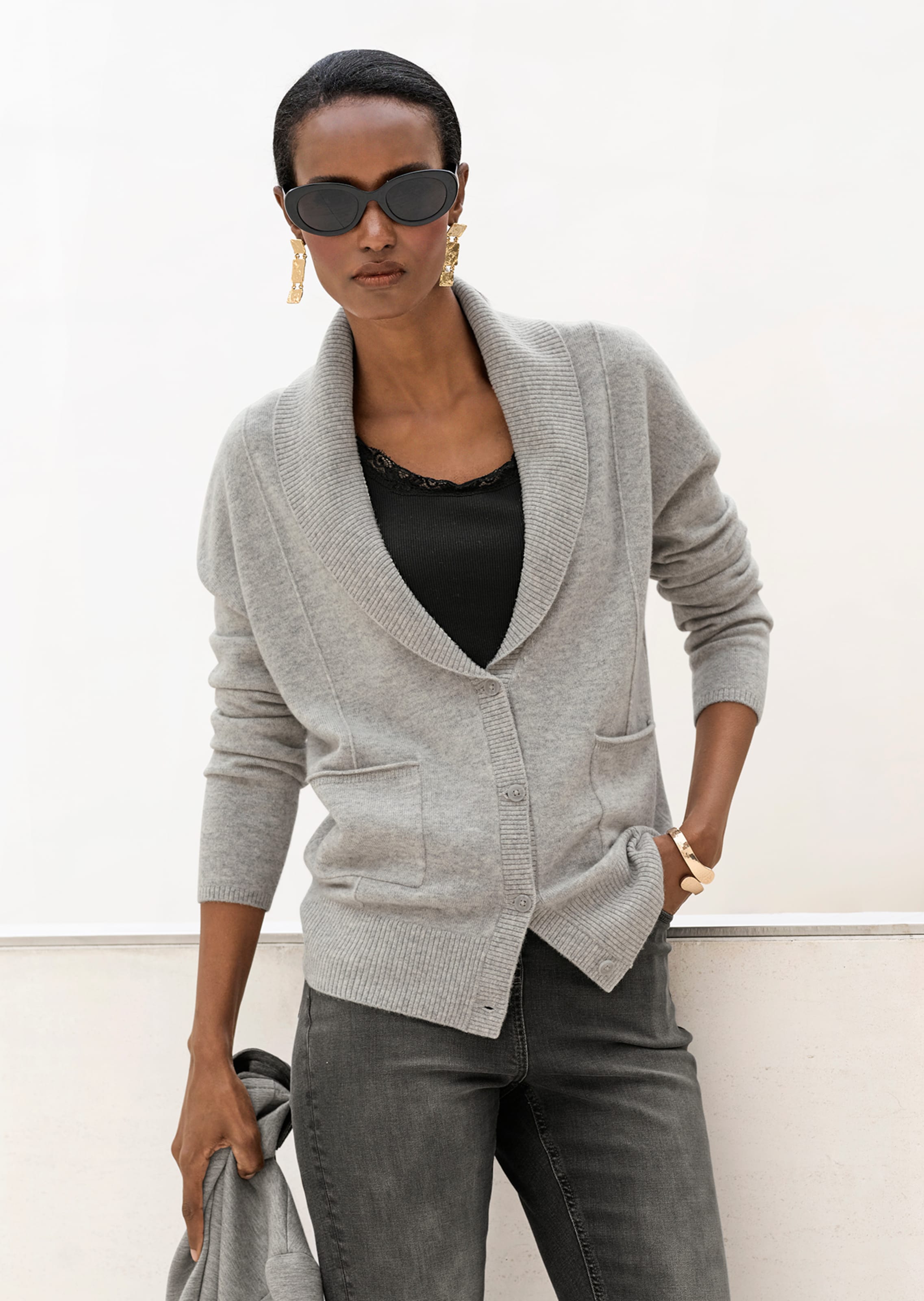 Eine Strickjacke in modisch gepflegter Optik, die durch ihre hochwertige Naturgarn-Mischung mit Good-Cashmere-Anteil begeistert. Dieser luxuriöse Mix sorgt für ein super flauschiges Trage-Gefühl und angenehme Wärme. Die modisch kurze Form mit langen Ärmeln ist stilvoll im Look. Der elegante Schalkragen und aufgesetzte Taschen verleihen ihr zusätzlichen Charme, während die einreihige Knopfleiste das Design harmonisch abrundet. Zeitlose Eleganz und erstklassiger Komfort - ein Must-Have für jede Garderobe.
