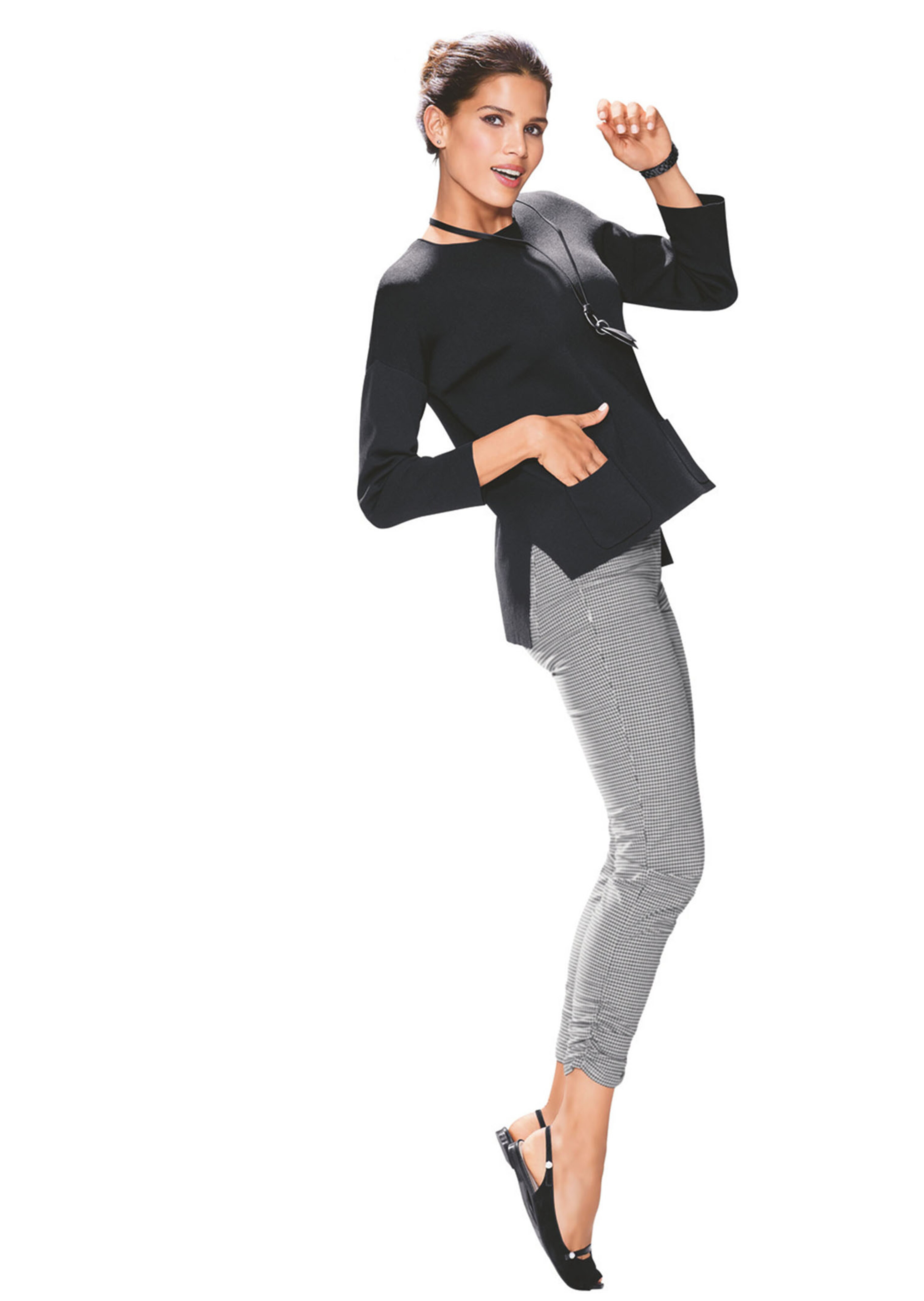Ein Strickpullover, der mit seiner lässigen Form und seiner Detailgestaltung den Trend setzt. Der angesagte Style mit modern verlängertem Rückteil und etwas kürzerem Vorderteil hat eine ganz neue, trendige Silhouette. Mit 3/4-Ärmeln, aufgesetzten Taschen und Seitenschlitzen weist der Sommerpullover moderne Details auf. Sie können ihn am rückseitigen Rundhalsausschnitt per Knöpfchen schließen. Der formstabile Crêpe-Strick trägt sich sommerlich kühl und angenehm durch den hohen Viskose-Anteil. In aktuellen Farben können Sie ihn perfekt zu den unterschiedlichsten Casuals kombinieren.