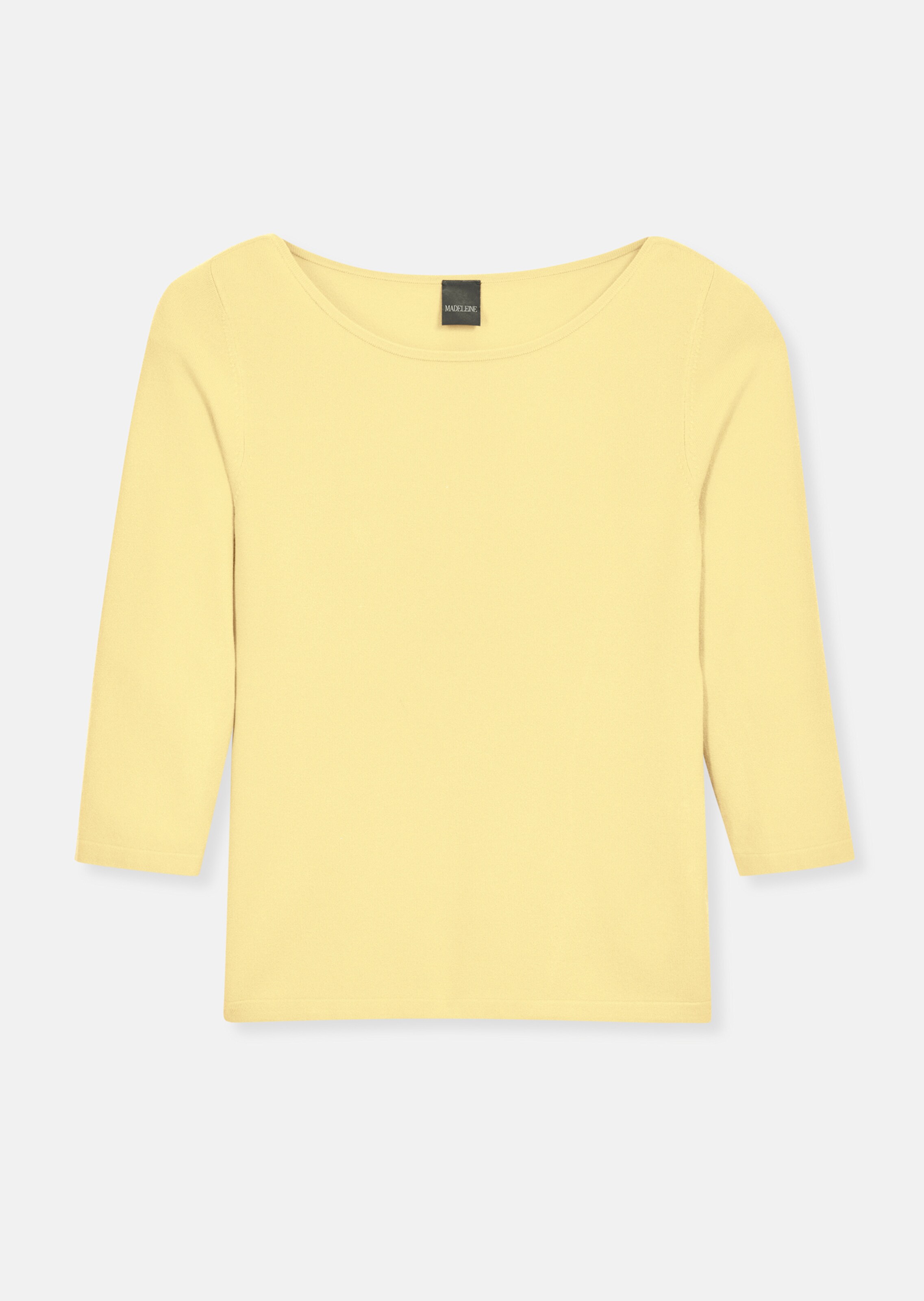 Der Kombi-Liebling: Der herrlich komfortable Viskose-Feinstrick macht den Pullover zum perfekten Begleiter bei sommerlichen Temperaturen. Der Strickpullover ist schlicht im Schnitt mit femininer Taillierung, aktuellem U-Boot-Ausschnitt und 3/4-Ärmeln. Ideal fürs Office oder in der Freizeit – der unkomplizierte Feinstrickpullover wirkt clean und edel und lässt sich immer wieder neu stylen.